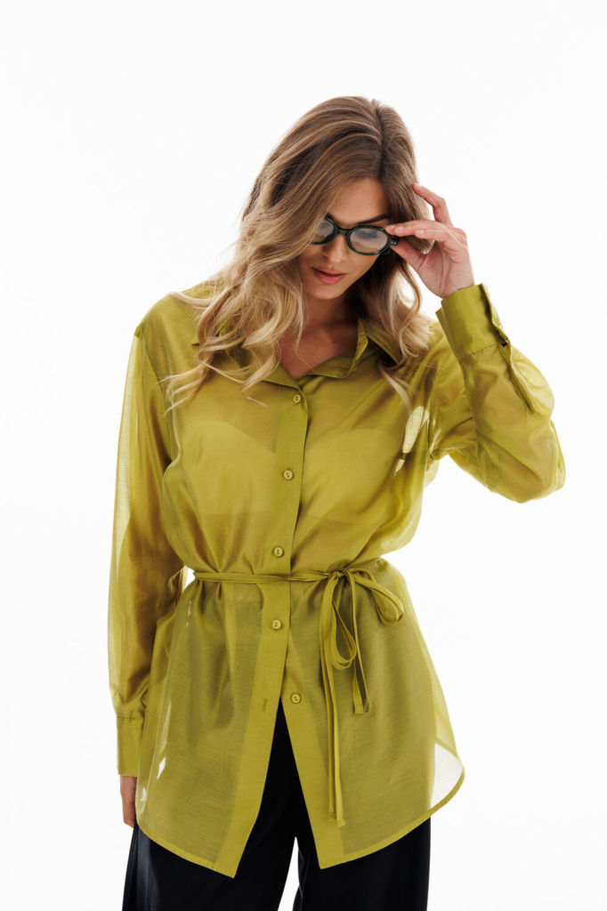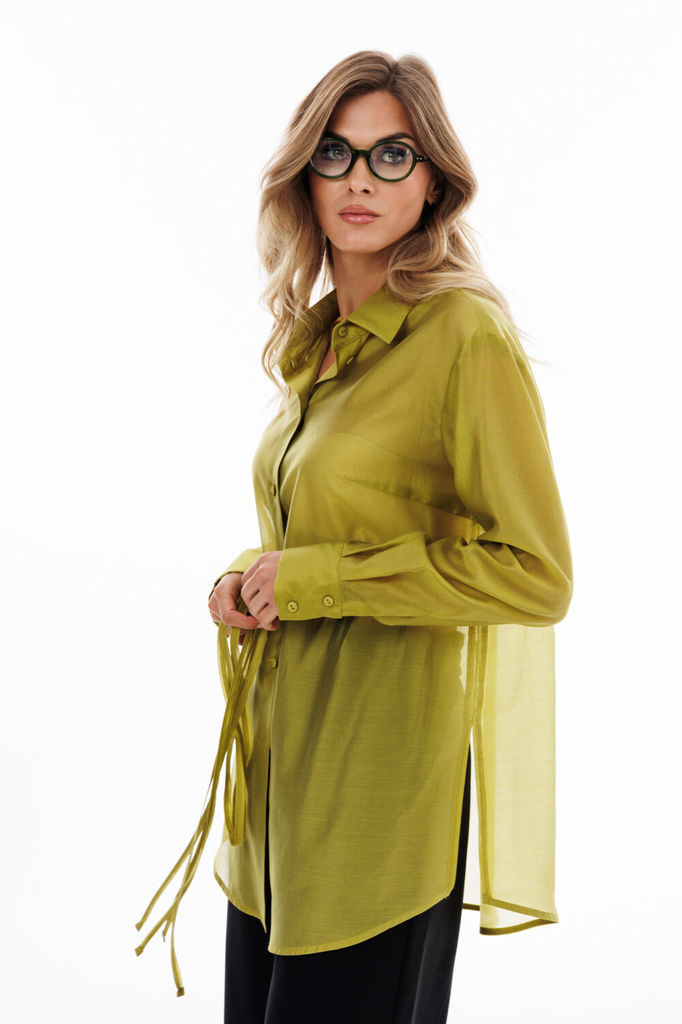 Состав: Вискоза-87%; ПА-13%; Блузка выполнена из плательно-блузочной ткани. Блузка прямого силуэта, длиной до линии бедер. Спереди центральная застежка на пуговицы. Воротник стояче-отложной. Плечевой ... Показать описаниешов удлинен. Рукав рубашечного кроя, одношовный с прорезью и двумя складками по низу. Рукав на притачной манжете. Низ блузки фигурной формы. В комплект входит пояс из основной ткани. Длина рубашки: р. 44-48 - 78 см, р. 50-54 - 79,5 см. Длина рукава: р. 44-48 - 77 см, р. 50-54 -78,5 см. Гарантийный срок не установлен ГОСТ 25294 - 2003