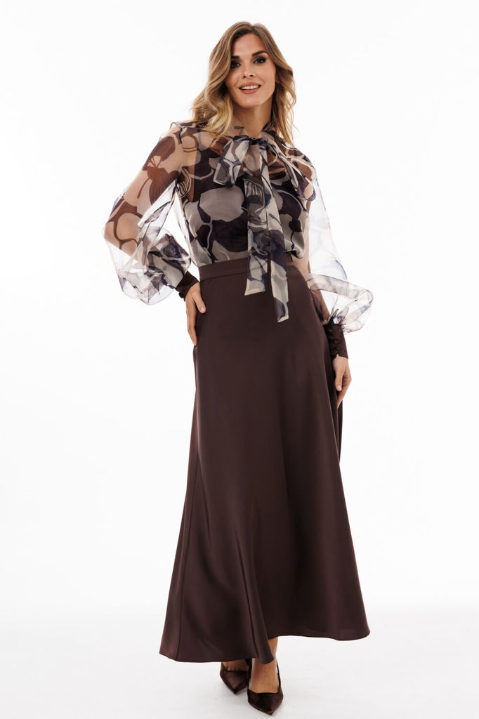 Состав: Блуза: ПЭ-100%; Подкладка: ПЭ-100%; Блузка + топ. Блузка выполнена из органзыс цветочным принтом. Блузка прямого силуэта, длиной выше линии бедер. Перед и спинка цельные. Спереди прорезь. Воро... Показать описаниетник-стойка, переходящий в бант. Рукав втачной, одношовный, расширенный к низу и присборенный. Низ рукава на притачной манжете из отделочной ткани, застегивающейся на четыре пуговицы. В комплект входит топ из тонкого атласа. Топ на регулируемых бретелях. Перед и спинка топа цельные. Длина блузки: р.42-46 - 70 см, р.48-52 - 71 см. Длина рукава: р.42-46 - 71 см, р.48-52 - 72 см. Гарантийный срок не установлен ГОСТ 25294 - 2003