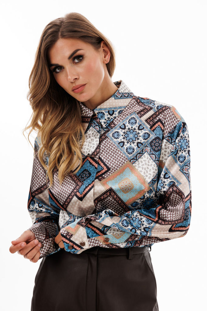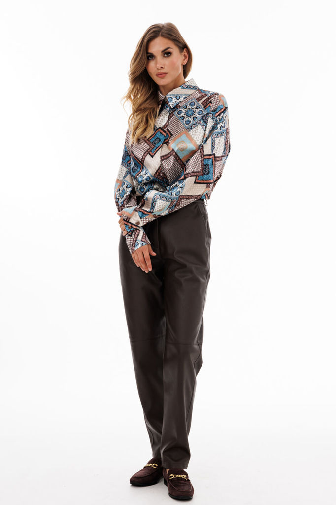 Состав: ПЭ-100%; Блузка выполнена из тонкого атласа с принтом. Спереди центральная застежка на потайную планку с пуговицами. Спинка цельная. Воротник стояче-отложной. Плечевой шов удлинен. Рукав рубаш... Показать описаниеечный одношовный. Низ рукава на притачной манжете. Длина блузки: р. 44-48 - 73 см, р. 50-54 - 74,5 см. Длина рукава от горловины: р. 44-48 - 78 см, р. 50-54 - 79,5 см Гарантийный срок не установлен ГОСТ 25294 - 2003
