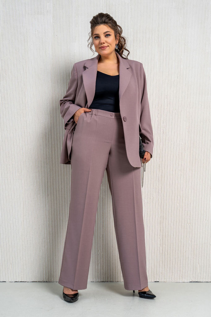 Состав: Вискоза-25%; ПЭ-73%; Эластан-2%; Сезон: Осень-Зима Рост: 164 Страна бренда: Беларусь Состав: Вискоза-25%; ПЭ-73%; Эластан-2%; Женский брючный костюм: стильный и универсальный образ идеально по... Показать описаниедойдет для женщин, которым важен собственный комфорт и личный стиль. Жакет прямого силуэта умерено свободный удлиненный, с центральной застежкой на 1 петлю и пуговицу, с воротником пиджачного типпа. Низ бортов прямой. По переду талиевые вытачки и функциональные карманы с клапаном. Спинка со средним швом без особенностей. Рукава втачные, двухшовные декорированные петлями и пуговицами. Изделие на подкладке хорошо держит форму. Брюки прямого силуэта с заутюженными стрелками и притачным поясом. Для максимально комфортной посадки по бокам пояса вставлена эластичная резинка. Застёжка на молнию с гульфиком и пуговица по поясу. По переду в боковых швах карманы. Задние половинки брюк с талиевыми вытачками. Длина жакета 74 см, длина рукава 62 см, длина брюк 112см.