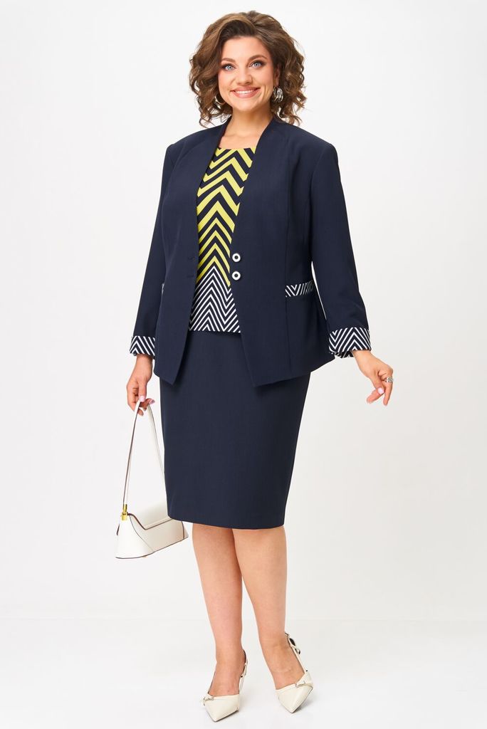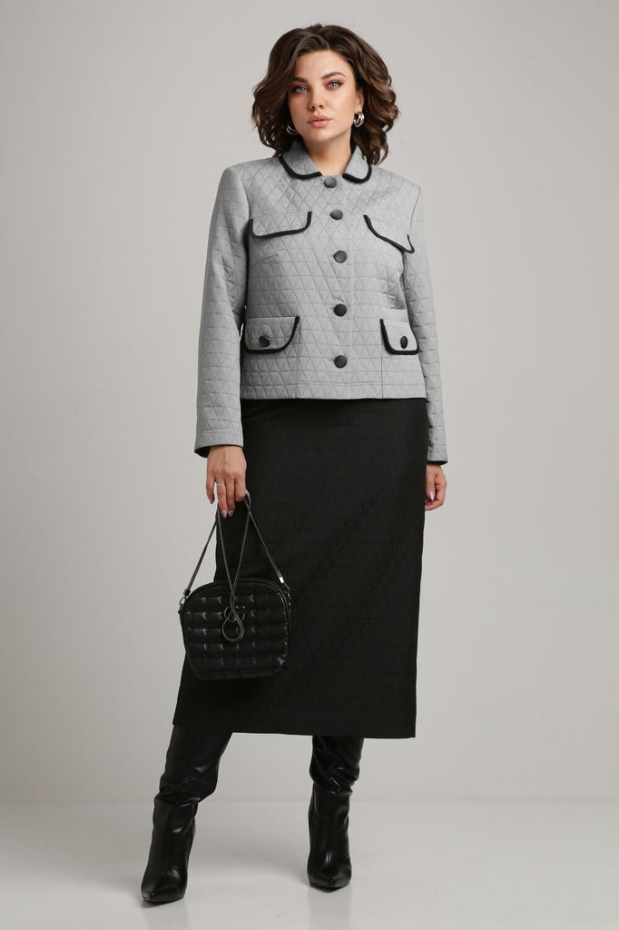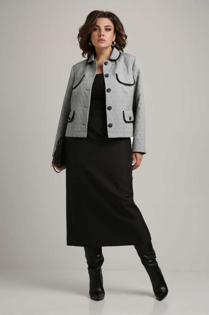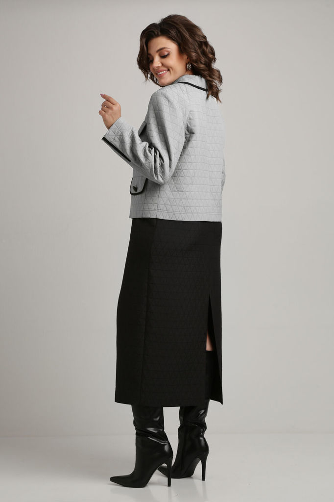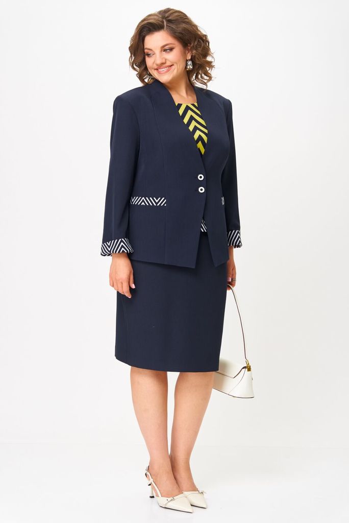 Состав: Вискоза-33%; ПЭ-64%; Спандекс-3%; Сезон: Осень-Зима Рост: 164 Страна бренда: Беларусь Состав: Вискоза-33%; ПЭ-64%; Спандекс-3%; Современный женский костюм из структурной жаккардовой ткани в пр... Показать описаниеинт имитация стежки. Жакет прямого силуэта с декоративной отделкой по воротнику и клапанам. По переду центральная застежка на петли и пуговицы и накладные карманы. Спинка со средним швом без особенностей. Рукава втачные двухшовные с декоративным кантом по низу локтевого шва. Юбка прямая длиной миди без подкладки. По заднему полотнищу юбки шов с застежкой потайная молния и разрезом по низу. Для максимально комфортной посадки по бокам пояса вставлена эластичная резинка. Длина жакета 53 см, длина рукава 61 см, длина юбки 89 см.
