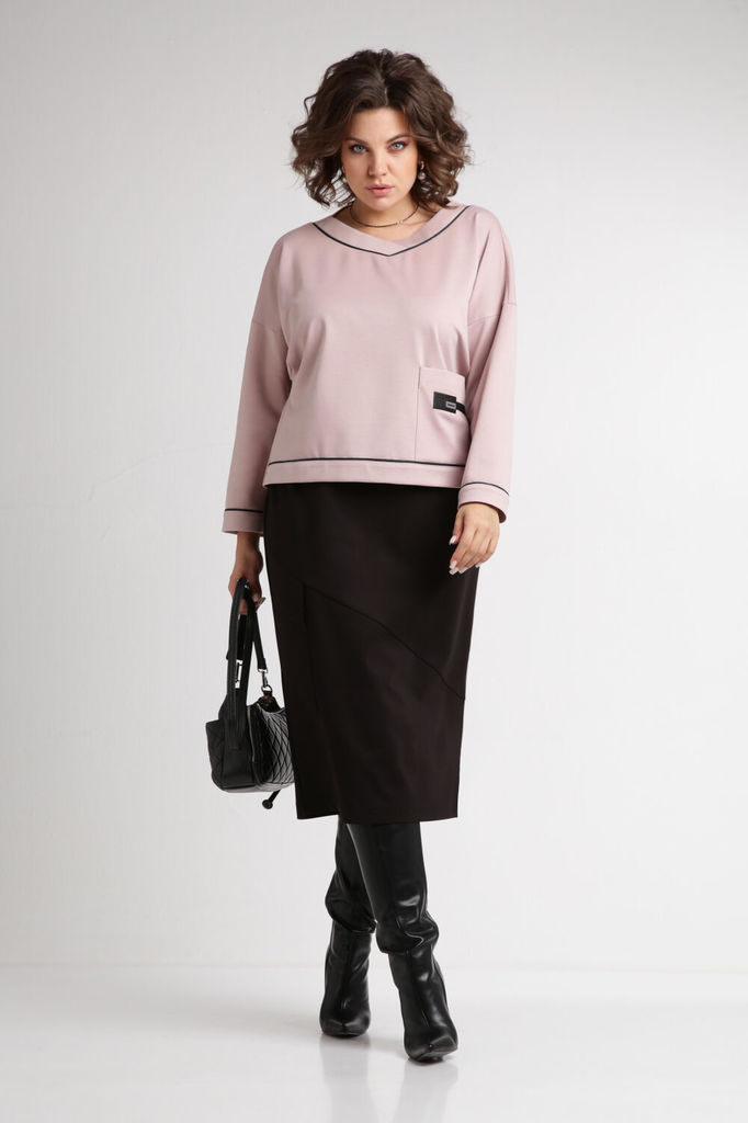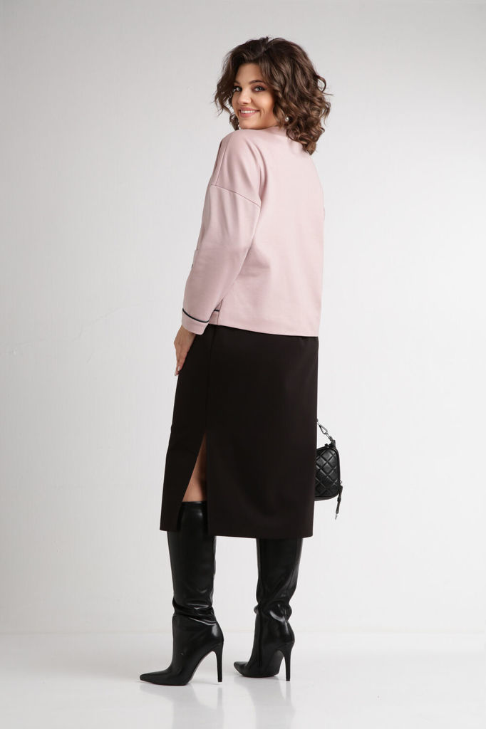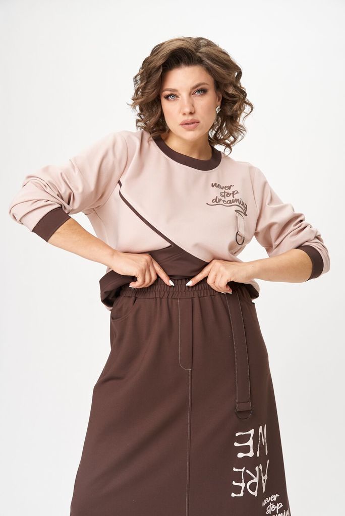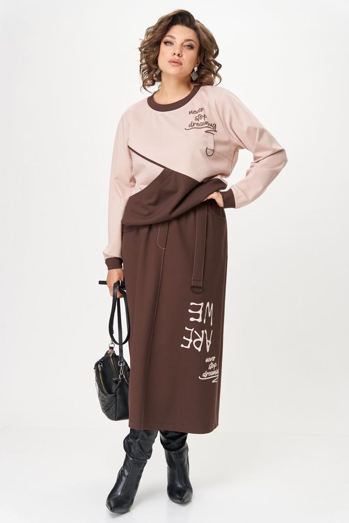 Состав: Вискоза-24%; ПЭ-72%; Спандекс-4%; Сезон: Осень-Зима Рост: 164 Страна бренда: Беларусь Состав: Вискоза-24%; ПЭ-72%; Спандекс-4%; Трикотажный юбочный костюм. Этот костюм сочетает в себе элегантн... Показать описаниеость и практичность. Джемпер оверсайз выглядит современно благодаря декоративным элементам в виде печати с полукольцом и сочетания двух цветов. Его свободный крой гармонично смотрится на девушках любого возраста, подчеркивая изящество. Линия плеча срущена, рукав втачной на манжете. Юбка А-образного силуэта с контрастной отстрочкой, на резинке по верху для максимально комфортной посадки. В близи боковых швов карманы.
