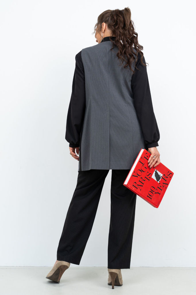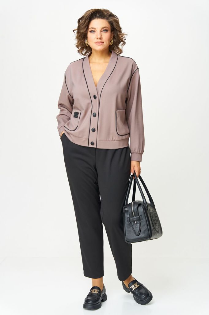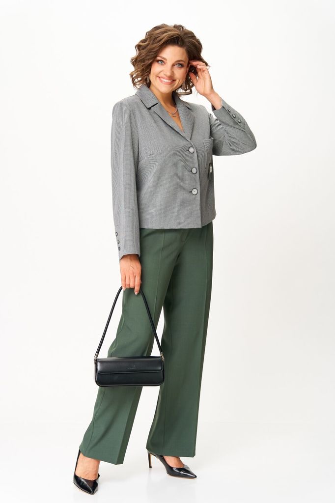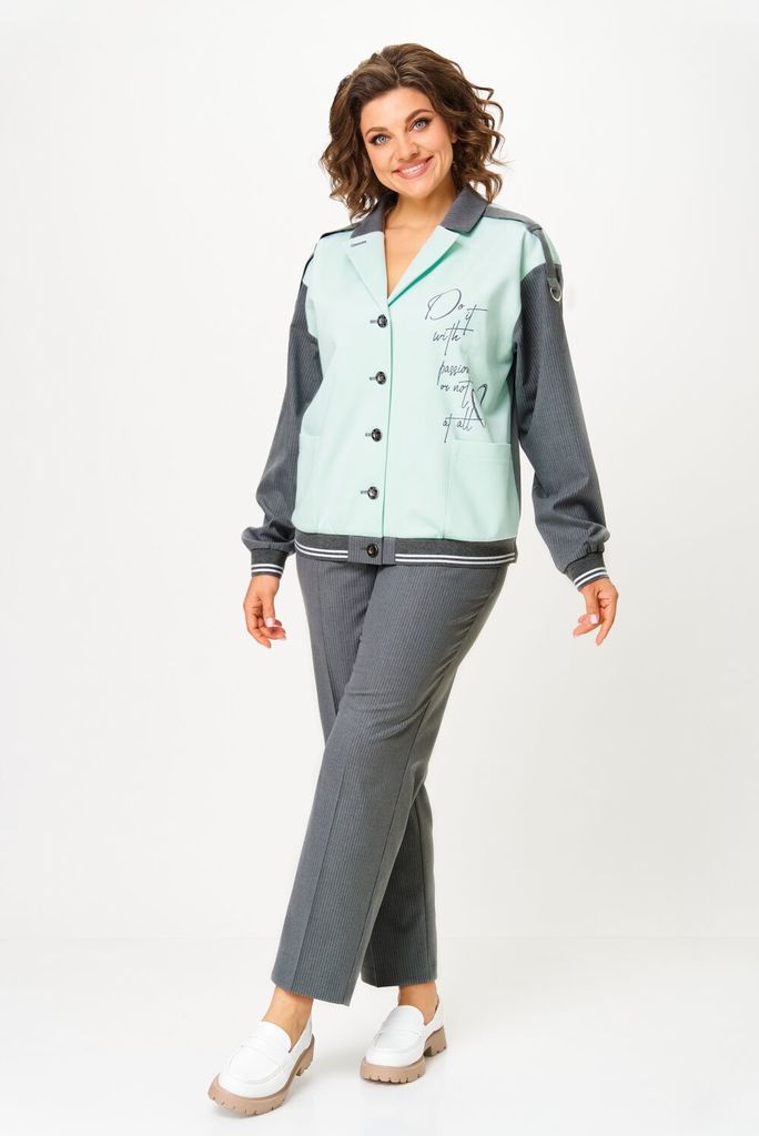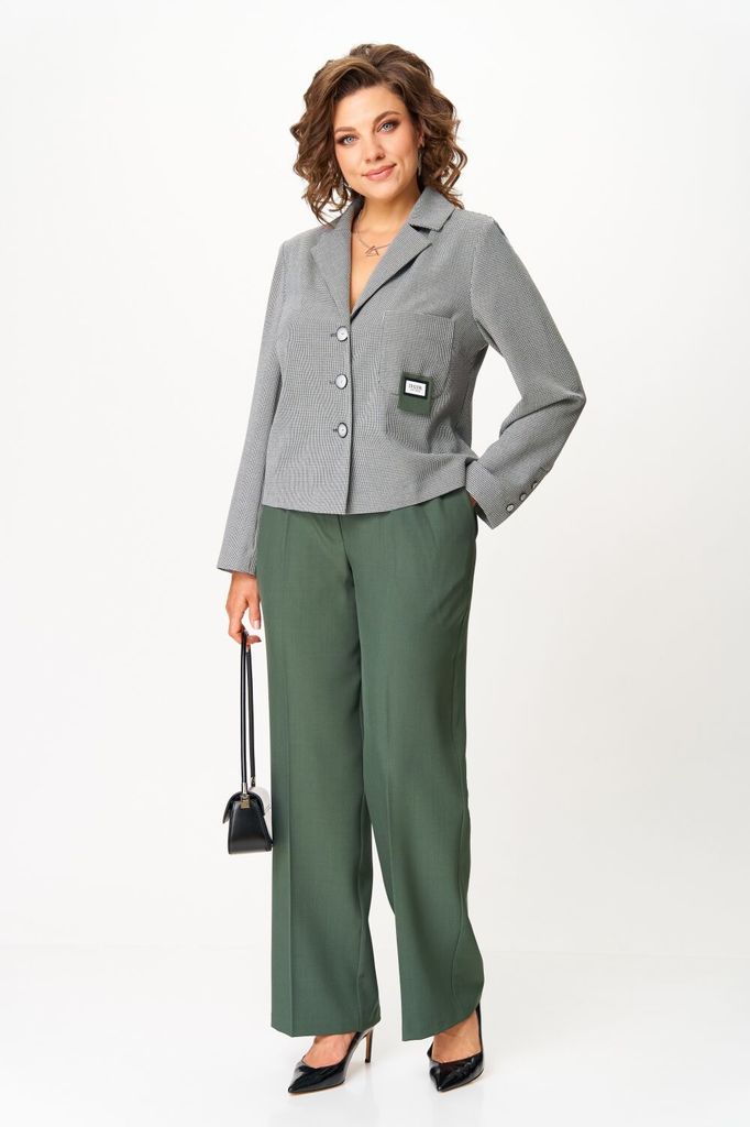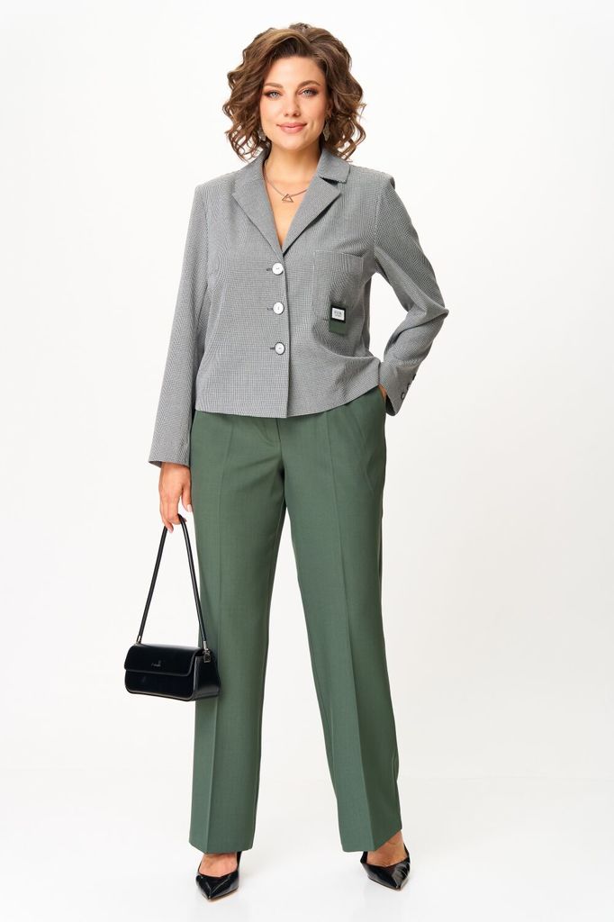 Состав: Жакет- Вискоза-50%; ПЭ-28%; Нейлон-2%; Брюки- Вискоза-32%; ПЭ-65%; Спандекс-3%; Сезон: Осень-Зима Рост: 164 Страна бренда: Беларусь Состав: Жакет: Вискоза-50%; ПЭ-28%; Нейлон-2%; Брюки: Вискоз... Показать описаниеа-32%; ПЭ-65%; Спандекс-3%; Оригинальный комплект, который не оставит незамеченным никого, и станет отличным дополнением к Вашему осеннему гардеробу. Данный комплект станет отличным вариантом для повседневных образов, а также для работы в офисе. Комплект двух-предметный, состоящий из жакета и брюк. Жакет из трикотажного полотна с декоративной контрастной отделкой, прямого силуэта с центральной застёжкой на молнию, горловина округлой формы. По переду жакета рельефы, декоративные листочки с имитацией кармана с застежкой. Спинка жакета со средним швом и рельефами. Рукав втачной, с совставкой из контрастной ткани. Жакет без подкладки. Брюки прямого силуэта с заутюженными стрелками и притачным поясом. Для максимально комфортной посадки по бокам пояса вставлена эластичная резинка. Застёжка на молнию с гульфиком и пуговица по поясу. По переду в боковых швах карманы. Задние половинки брюк с талевыми вытачками.