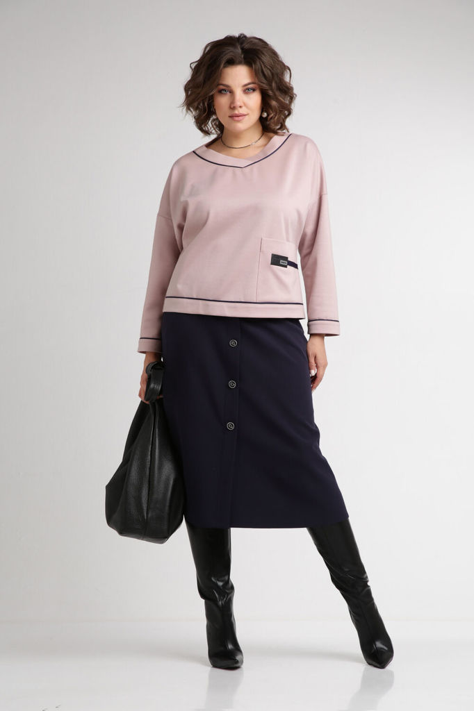 Состав: Блуза- Вискоза-50%; ПЭ-28%; Нейлон-22%; Юбка- Вискоза-25%; ПЭ-73%; Эластан-2%; Сезон: Осень-Зима Рост: 164 Страна бренда: Беларусь Состав: Блуза: Вискоза-50%; ПЭ-28%; Нейлон-22%; Юбка: Вискоза... Показать описание-25%; ПЭ-73%; Эластан-2%; Комплект женский- юбочный. Туника из высококачественного трикотажного полотна стойкого к растяжению. Вырез горловины V- образный с отделочным декоративным кантом. Рукав втачной на спущенной пройме. По левой части переда накладной карман с декоративной нашивкой. Юбка А-образного силуэта с карманами в боковых швах. По переду планка декорированная пуговицами. Застежка потайная молния в среднем шве заднего полотнища. Для максимально комфортной посадки по бокам пояса вставлена эластичная резинка. Длина туники 59 см, длина рукава от горловины 68 см. Длина юбки 79 см.