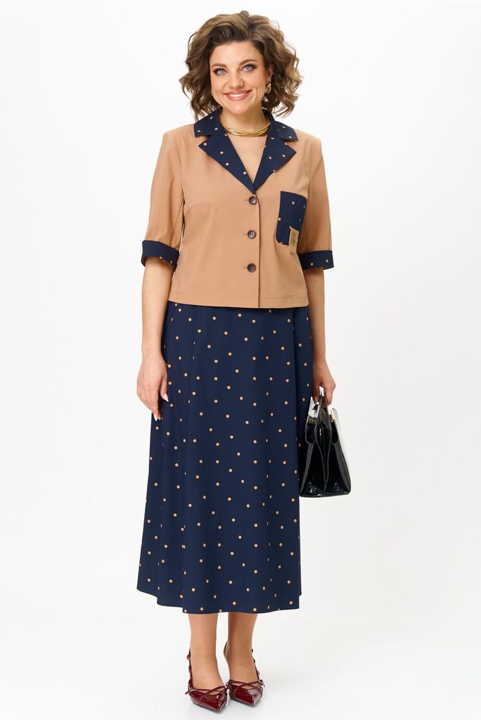 Состав: ПЭ-26%; Хлопок-72%; Эластан-2%; Сезон: Весна Рост: 164 Страна бренда: Беларусь Состав: ПЭ-26%; Хлопок-72%; Эластан-2%; Комплект женский состоит из жакета и юбки. Элегантный женский жакет без п... Показать описаниеодкладки с воротником пиджачного типа и застежкой на 3-и петли и пуговицы. По левой части переда накладной карман с декоративной нашивкой. Рукав втачной двухшовный с манжетой по низу. Юбка А-образного силуэта со складками по переду, в боковых швах карманы. Для максимально комфортной посадки по бокам пояса вставлена эластичная резинка. Длина жакета 50 см, длина рукава 60 см, длина юбки 85 см.