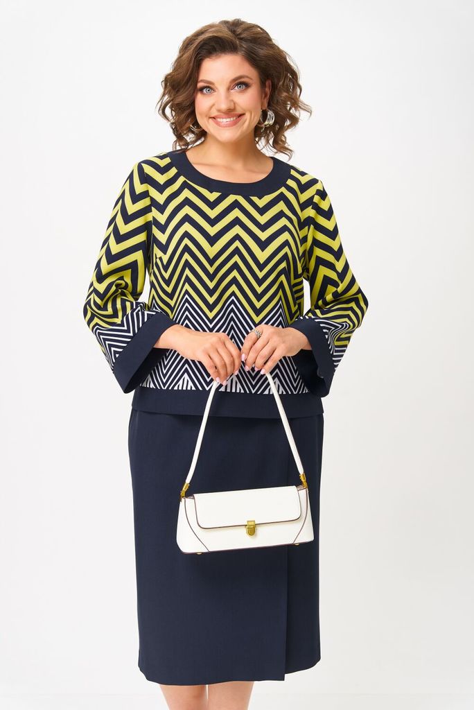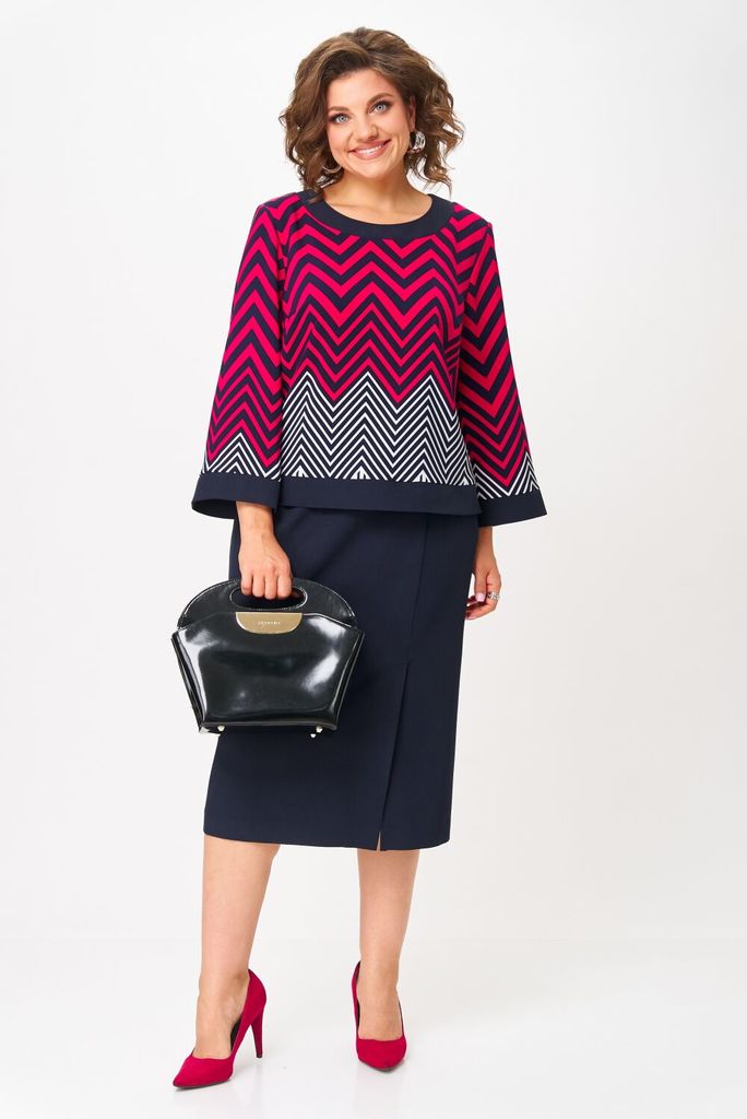 Состав: Блуза- Вискоза-35%; ПЭ-62%; Эластан-3%; Юбка- Вискоза-35%; ПЭ-62%; Эластан-3%; Сезон: Осень-Зима Рост: 164 Страна бренда: Беларусь Состав: Блуза: Вискоза-35%; ПЭ-62%; Эластан-3%; Юбка: Вискоза... Показать описание-35%; ПЭ-62%; Эластан-3%; Стильный и гармоничный костюм состоит из блузки и юбки. Геометрический принт блузки притягивать к себе взгляд. Блузка прямого силуэта с нагрудными вытачками и декоративной отделкой по горловине, низу изделия и низу рукава. Рукав втачной одношовный. Спинка без особенностей. Юбка прямого силуэта со шлицей спереди по левой части. Пояс притачной с эластичной тесьмой по спинке, что обеспечивает максимально комфортную посадку на любой тип фигуры.
