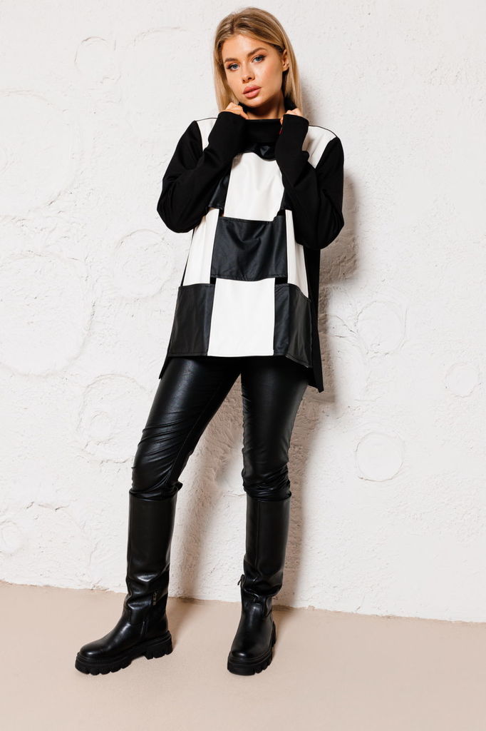 Состав: Вискоза-65%; ПЭ-32/100%; Спандекс-3%; Сезон: Осень-Зима Рост: 170 Страна бренда: Беларусь Состав: Вискоза-65%; ПЭ-32/100%; Спандекс-3%; Джемпер прямого силуэта. Воротник отложная стойка. Рукав... Показать описание втачной.Перед выполнен из экокожи в виде плетения. Спинка,рукав и воротник из трикотажной ткани.