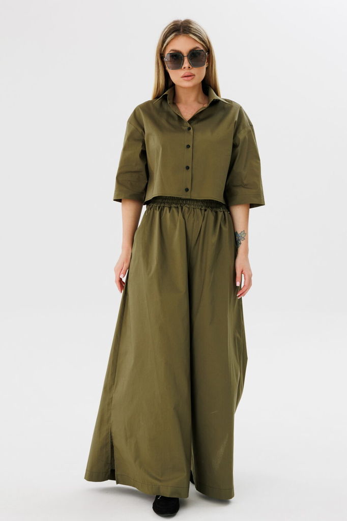 Состав: Хлопок-100%; Сезон: Лето Рост: 170 Страна бренда: Беларусь Состав: Хлопок-100%; Юбка-брюки свободного силуэта. Пояс на резинке. По низу брюк в боковых швах разрезы.