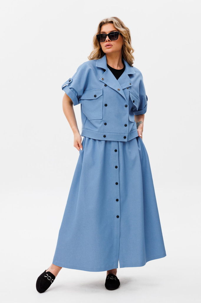 Состав: Хлопок-95%; Эластан-5%; Сезон: Лето Рост: 170 Страна бренда: Беларусь Состав: Хлопок-95%; Эластан-5%; Жакет женский двубортный прямого силуэта с цельнокроеным рукавом. Рукав короткий с отложно... Показать описанией манжетой на пате. По переду накладные карманы с клапаном. Спинка со швом.
