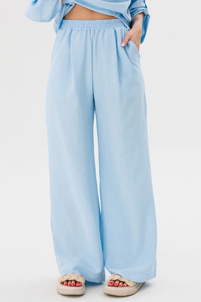 Состав: Вискоза-87%; Нейлон-13%; Сезон: Лето Рост: 170 Страна бренда: Беларусь Состав: Вискоза-87%; Нейлон-13%; Брюки палаццо свободного кроя с притачным поясом на резинеке. В боковых швах карманы.