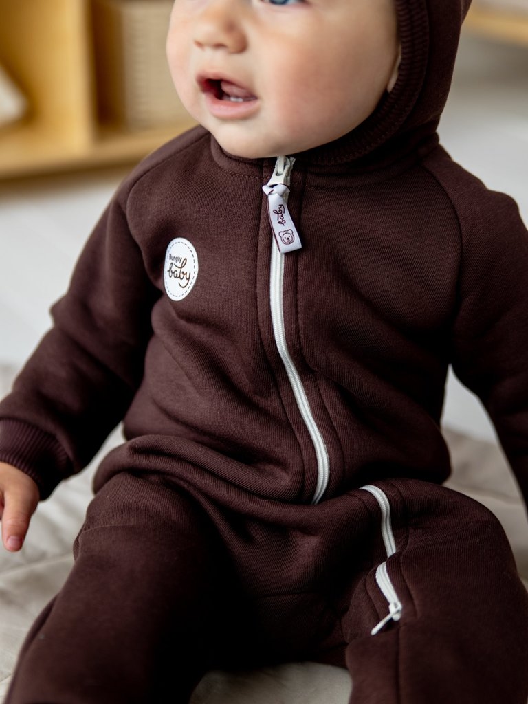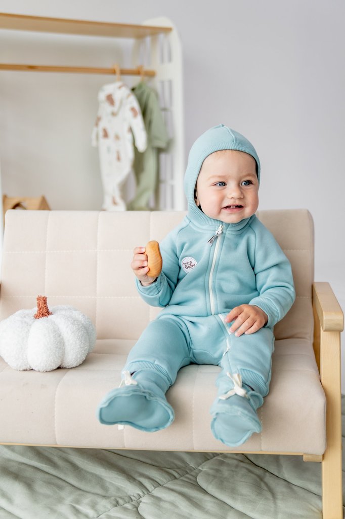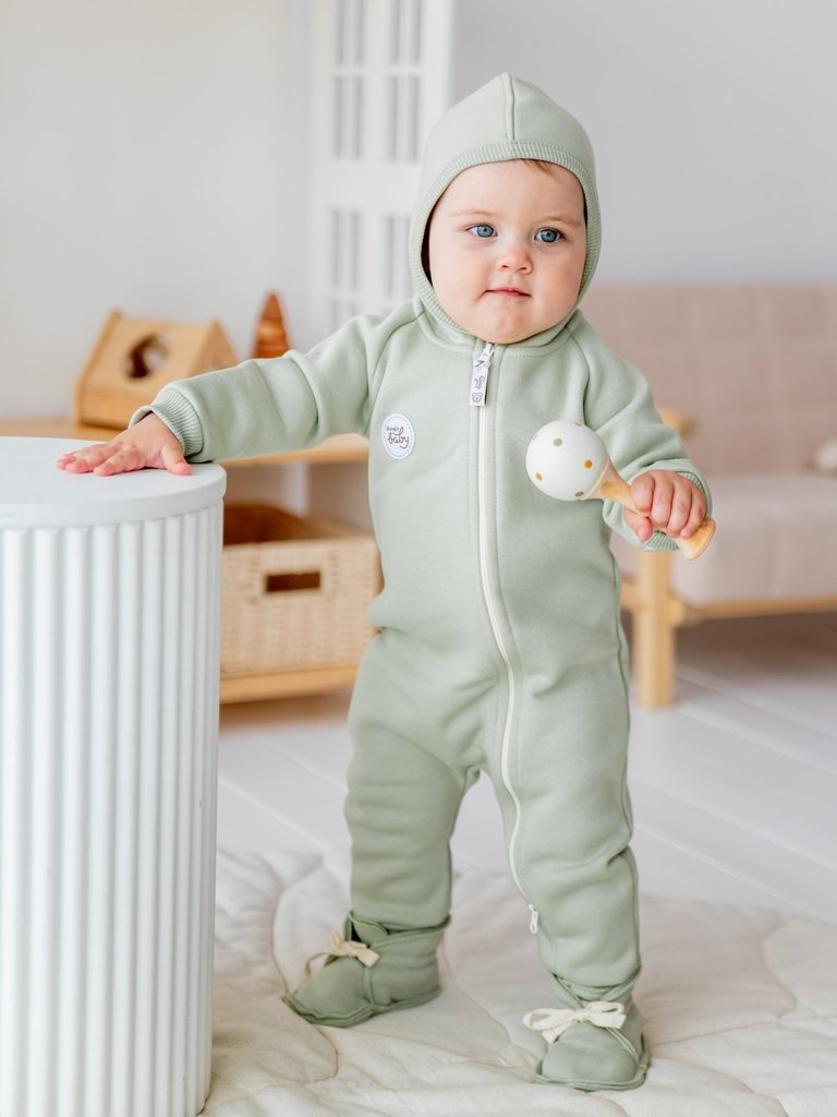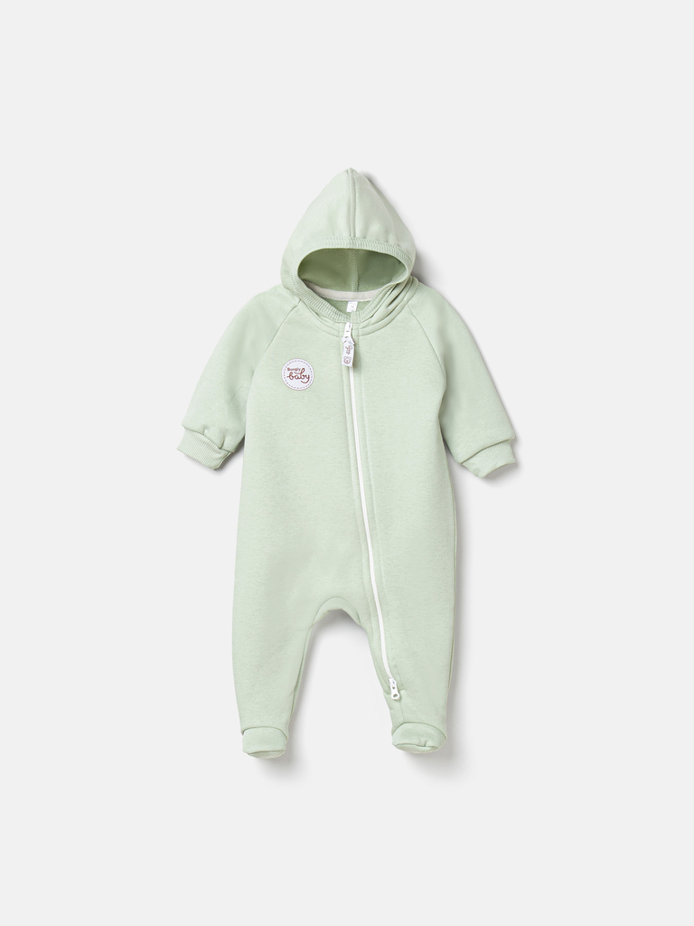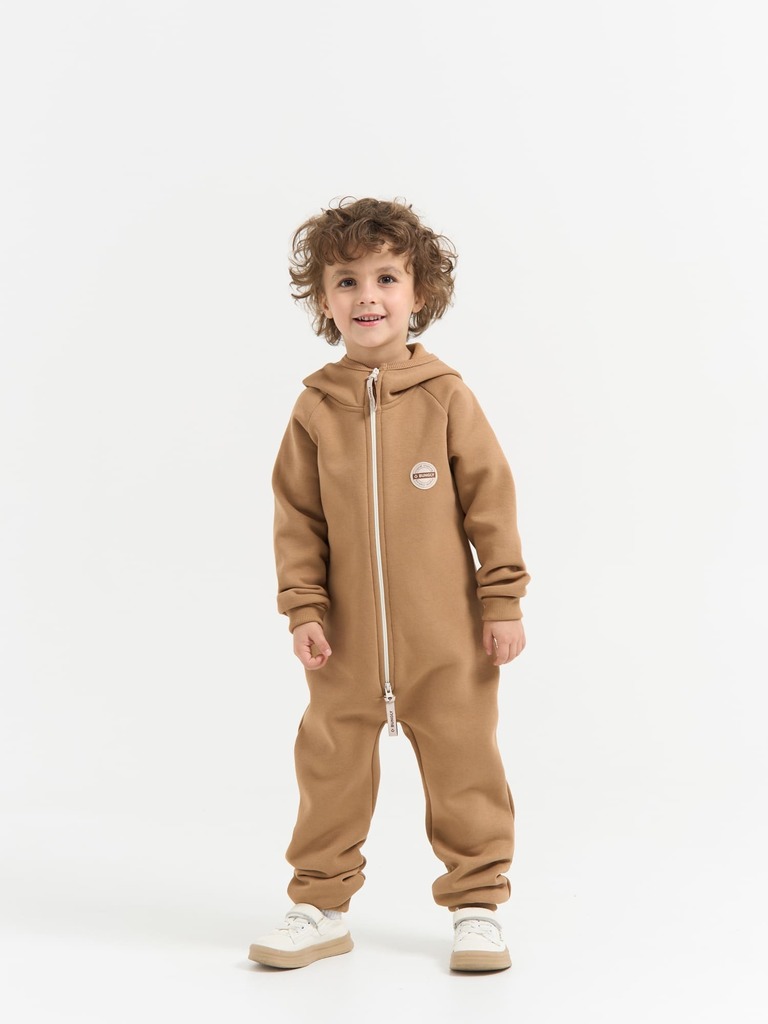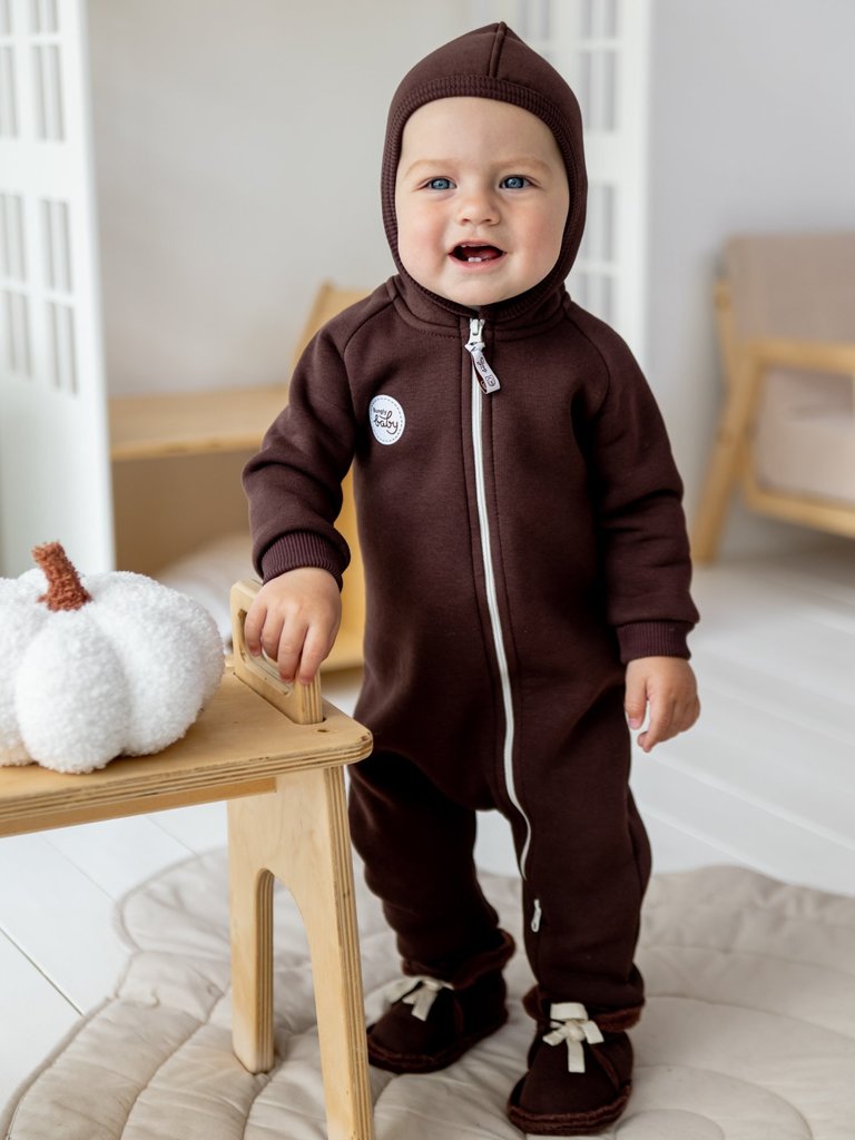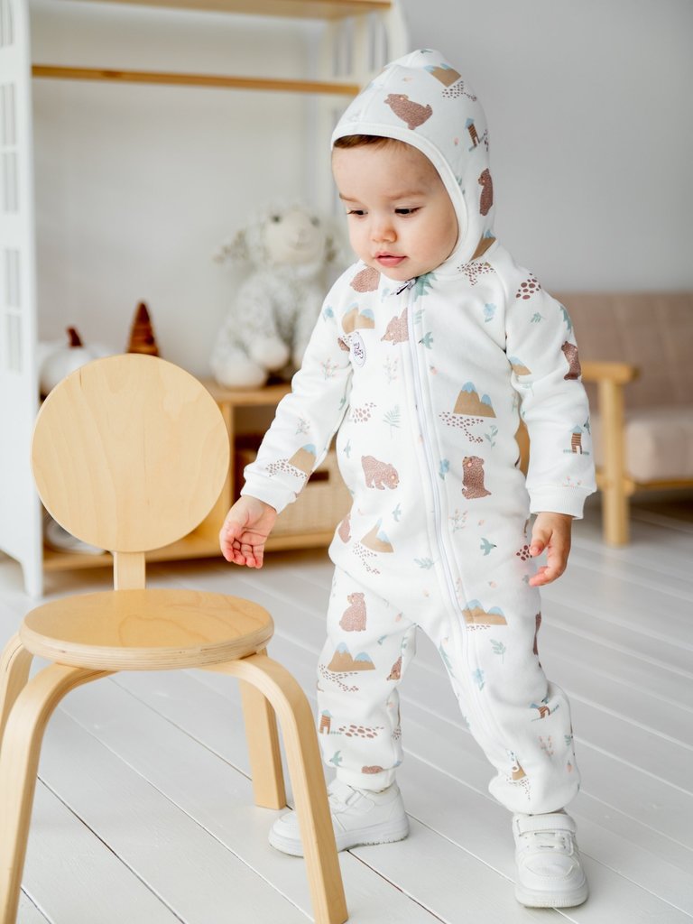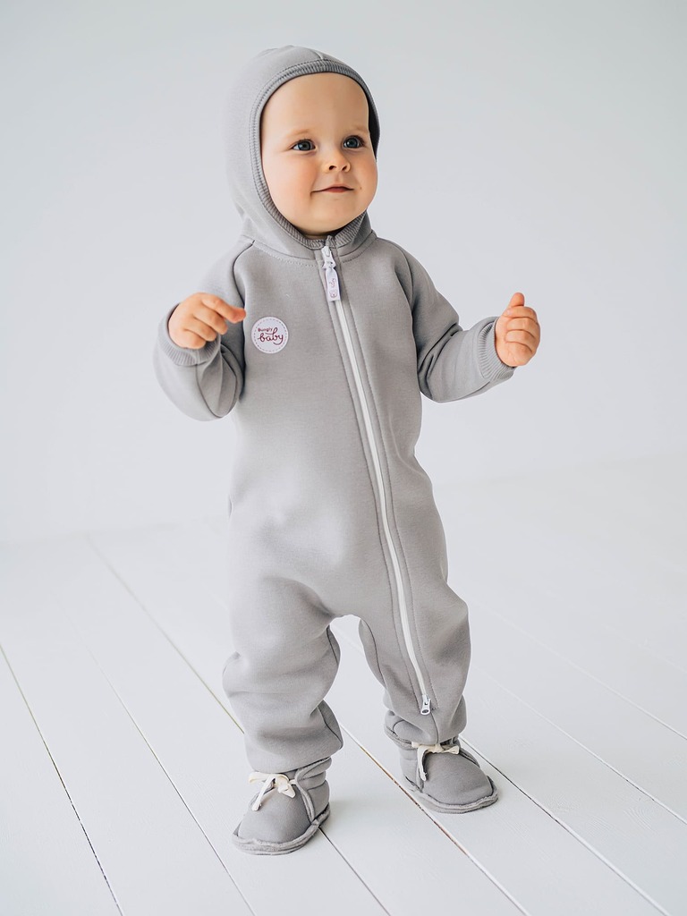 Тёплый комбинезон с капюшоном из футера с начёсом – отличный вариант для прогулок и домашних игр в прохладное время года. Одношовный капюшон с окантовкой надёжно защищает голову малыша от ветра и легк... Показать описаниео надевается даже поверх шапочки. Центральная молния с двумя бегунками и фирменным пуллером позволяет быстро и удобно переодеть малыша – удобно, если нужно срочно сменить одежду после прогулки или перед сном. Молния плавно переходит в ножку и дополнена защитной планкой, чтобы избежать защемления кожи. Манжеты на рукавах мягко фиксируют комбинезон и не дают им задираться во время активных движений. Закрытая ножка сохраняет тепло, что особенно важно для малышей, которые ещё не носят обувь или часто спят на прогулке в коляске. Комбинезон легко надеть поверх бодика или тонкой кофты – подходит для прогулок на свежем воздухе, поездок в гости и уютных вечеров дома. Ткань Футер трехнитка с начесом Состав 65% хлопок, 35% полиэстер Уход Машинная стирка 40 °C. Обязательна предварительная стирка отдельно от других изделий. Страна производства: Россия