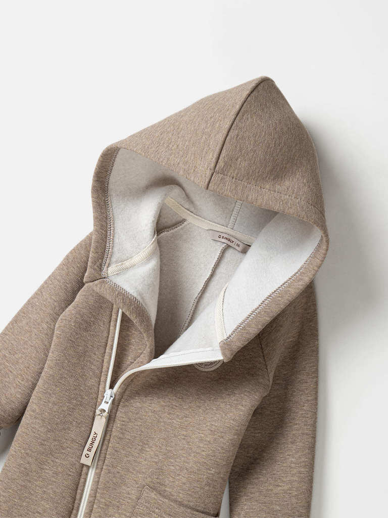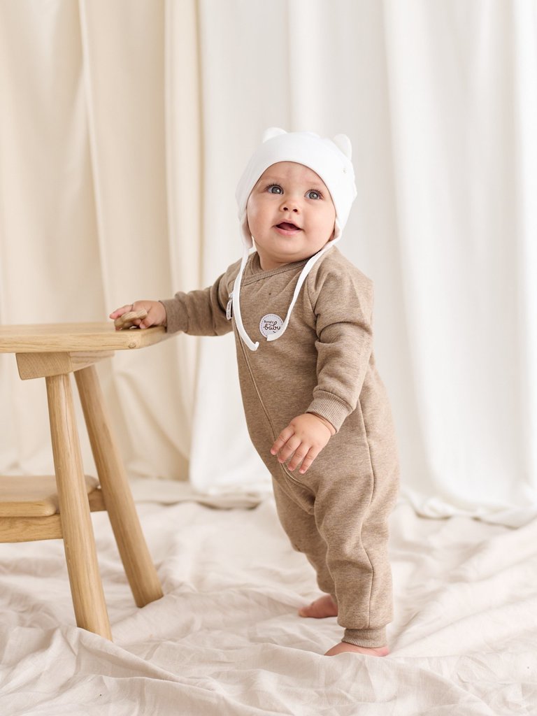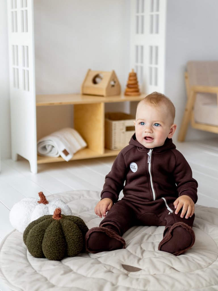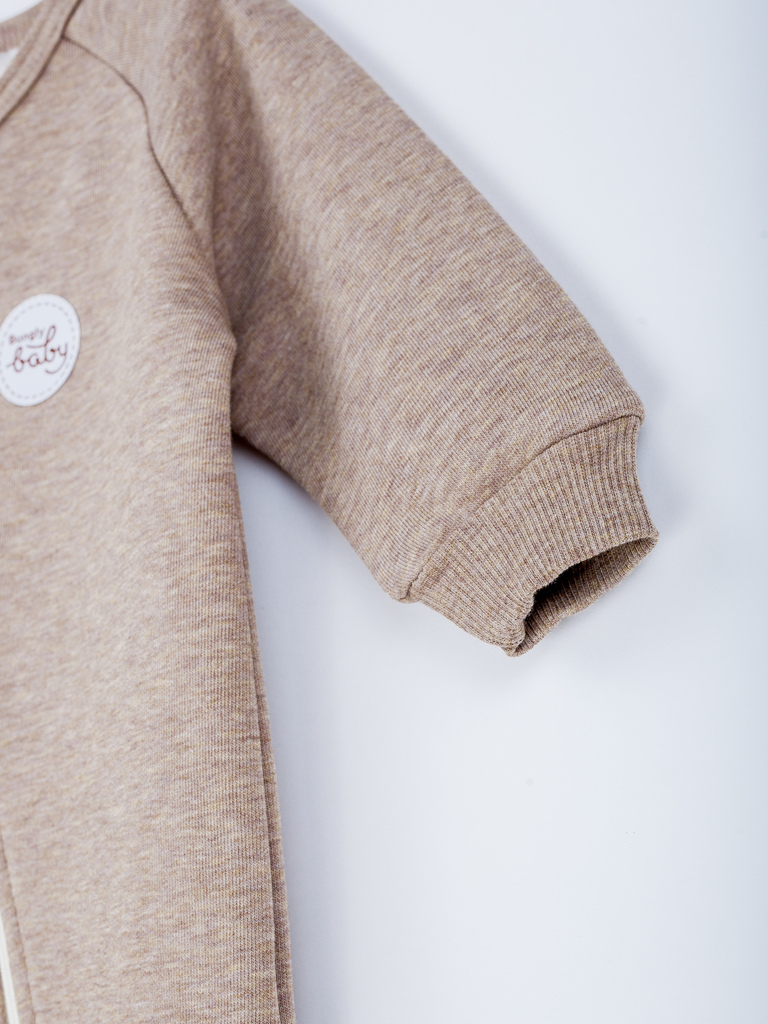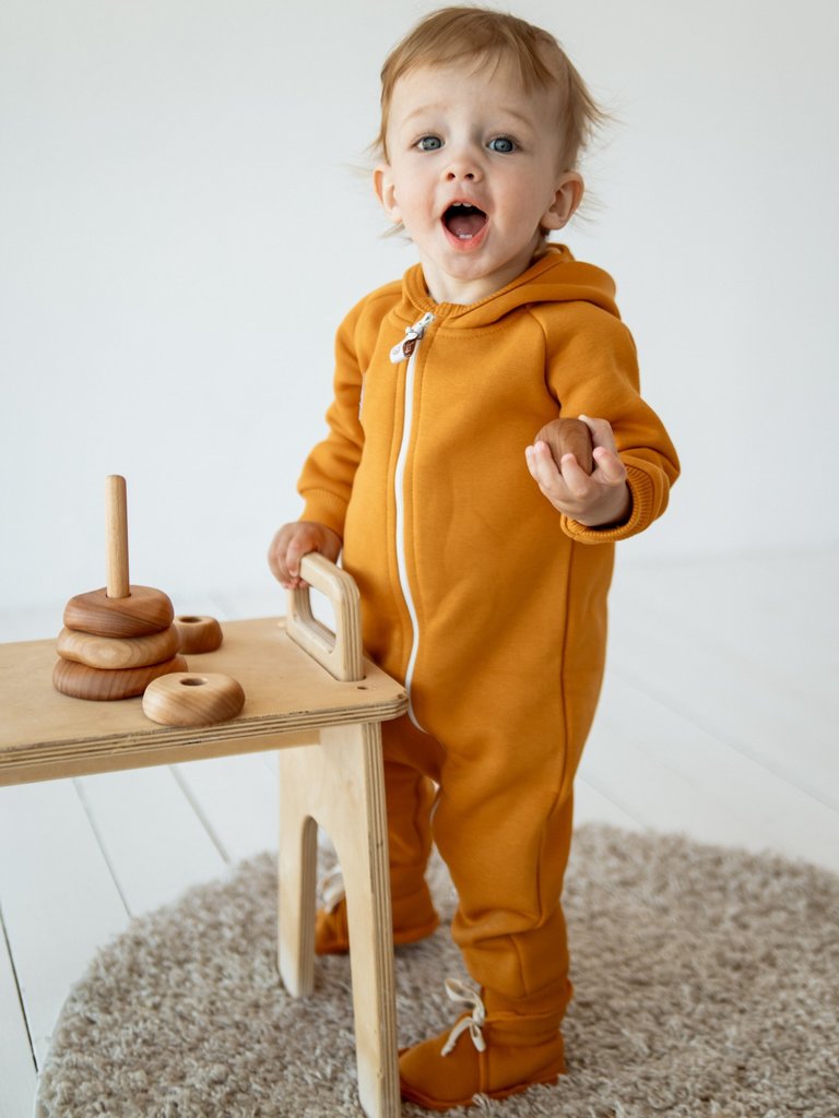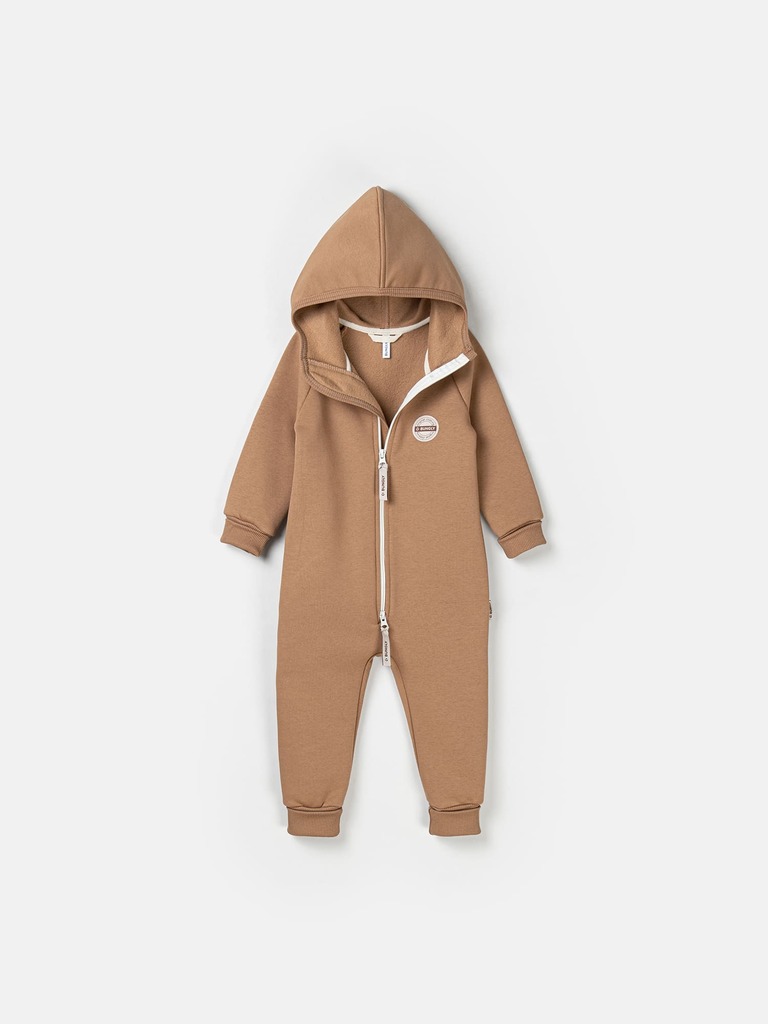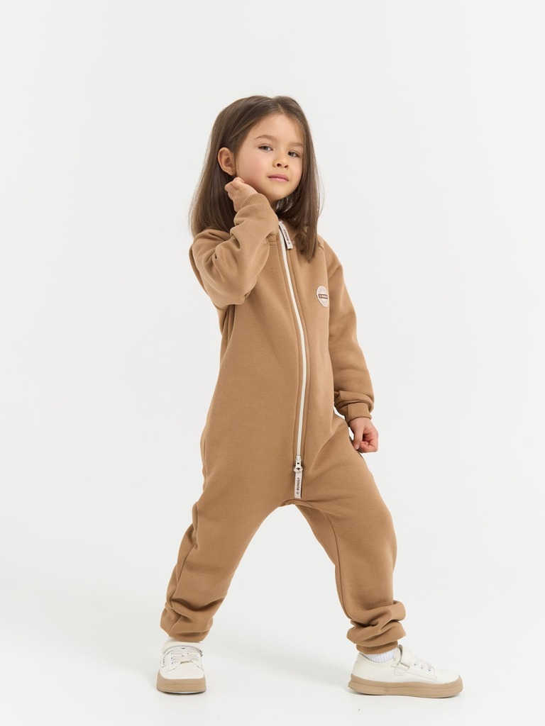Тёплый комбинезон с капюшоном из футера с начёсом – отличный вариант для прогулок и домашних игр в прохладное время года. Одношовный капюшон с окантовкой надёжно защищает голову малыша от ветра и легк... Показать описаниео надевается даже поверх шапочки. Центральная молния с двумя бегунками и фирменным пуллером позволяет быстро и удобно переодеть малыша – удобно, если нужно срочно сменить одежду после прогулки или перед сном. Молния плавно переходит в ножку и дополнена защитной планкой, чтобы избежать защемления кожи. Манжеты на рукавах мягко фиксируют комбинезон и не дают им задираться во время активных движений. Закрытая ножка сохраняет тепло, что особенно важно для малышей, которые ещё не носят обувь или часто спят на прогулке в коляске. Комбинезон легко надеть поверх бодика или тонкой кофты – подходит для прогулок на свежем воздухе, поездок в гости и уютных вечеров дома. Ткань Футер трехнитка с начесом Состав 65% хлопок, 35% полиэстер Уход Машинная стирка 40 °C. Обязательна предварительная стирка отдельно от других изделий. Страна производства: Россия