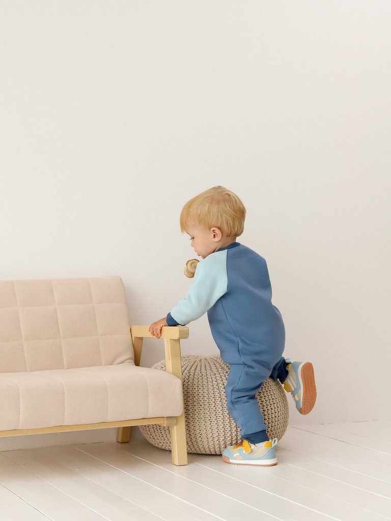 Комбинезон-косуха в стиле колор-блок из облегчённого футера с начёсом – удобный и яркий вариант для активных малышей. Компактный силуэт и мягкий хлопковый трикотаж делают эту модель комбинезона лучшим... Показать описание выбором для поддевы под верхнюю одежду, не сковывая движений. Манжеты по низу штанин мягко фиксируют комбинезон и не дают ему задираться даже при активном ползании или первых шагах. Окантовка по горловине аккуратно прилегает к шее и не натирает, обеспечивая дополнительный комфорт. Двойной нахлест защищает грудь от холода. Смещённая молния, уходящая вправое плечо и левую ножку, облегчает переодевание – быстро и удобно сменить одежду после прогулки или перед сном. Комбинезон отлично подходит для прогулок в коляске, походов в гости или уютных домашних вечеров. Удобно носить самостоятельно или использоватькак поддеву под верхнюю одежду. Ткань Футер трехнитка с начесом Состав 65% хлопок, 35% полиэстер Уход Машинная стирка 40 °C. Обязательна предварительная стирка отдельно от других изделий. Страна производства: Россия