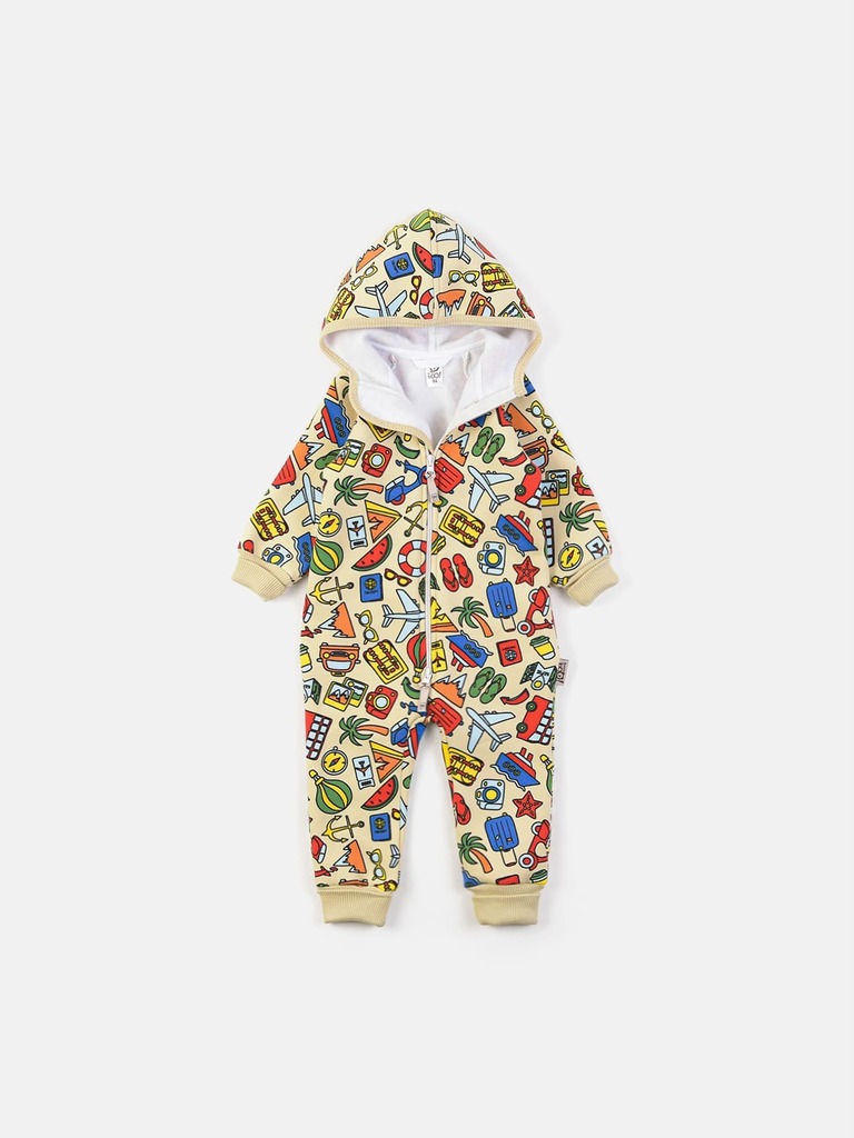 Комбинезон с капюшоном из футера с начёсом – уютный и продуманный вариант для малышей на каждый день. Одношовный капюшон с окантовкой защищает голову от ветра и легко надевается даже поверх тонкой шап... Показать описаниеочки. Фирменная нашивка добавляет яркий акцент. Центральная молния с двумя бегунками и фирменным пуллером облегчает переодевание – удобно, если малыш засыпает на прогулке или нужно быстро сменить одежду дома. Молния переходит в ножку и защищена планкой, чтобы избежать защемления кожи. Манжеты на рукавах и ножках мягко фиксируют комбинезон, не позволяя ему задираться даже при активных движениях или во время сна. Для малышей до 74 размера комбинезон выполнен без шва на спинке – это особенно важно для комфорта в положении лёжа. Комбинезон удобно комбинировать с бодиками, футболками или носить как самостоятельную вещь – подходит для прогулок в коляске, поездок в гости и домашних игр. Ткань Футер трехнитка с начесом Состав 65% хлопок, 35% полиэстер Уход Машинная стирка 40 °C. Обязательна предварительная стирка отдельно от других изделий. Страна производства: Россия