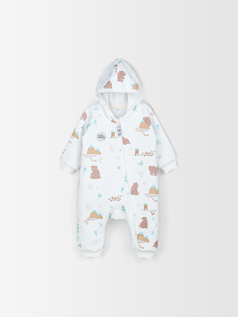 Уютный комбинезон для прохладной погоды. Приятный к телу хлопковый трикотаж с мягким начесом на изнанке. Удобный капюшон для защиты от ветра и холода. Молния переходит в ножку для легкости переодевани... Показать описаниея. Двойной бегунок позволяет быстро менять подгузник и не раздевать ребенка полностью. Защита от прищемления по всей длине молнии. Мягкие манжеты на рукавах и по ножке. До 74 размера включительно нет шва по спинке. Ткань Футер трехнитка с начесом Состав 65% хлопок, 35% полиэстер Уход Машинная стирка 40 °C. Обязательна предварительная стирка отдельно от других изделий. Страна производства: Россия