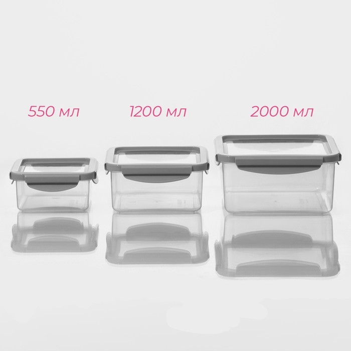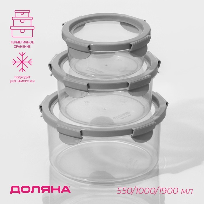 Контейнеры для еды Доляна, пластик, набор 3 шт, 550 мл, 1,2 л, 2 л, прозрачныеВопросы по товару