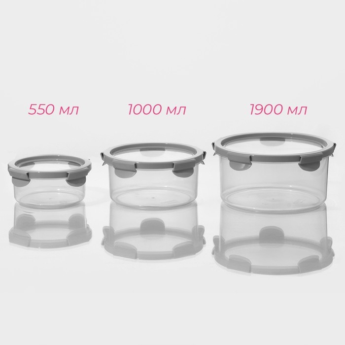 Контейнеры для еды Доляна, пластик, набор 3 шт, 500 мл, 1 л, 1,9 л, прозрачныеВопросы по товару