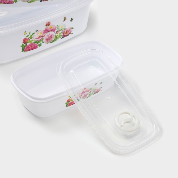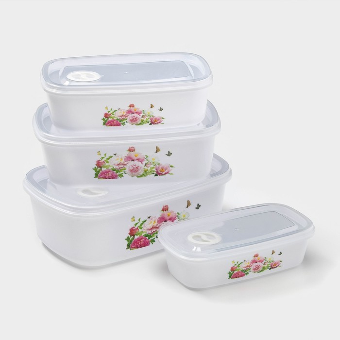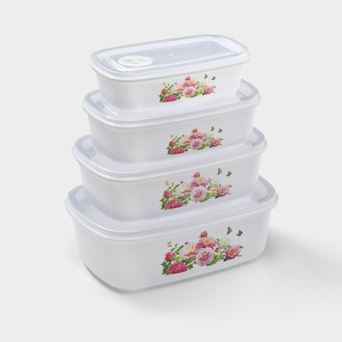 Контейнеры для еды с клапаном Доляна «Розы», набор 4 шт: 400 мл, 650 мл, 1 л, 1,5 л, пластик, белыеВопросы по товару