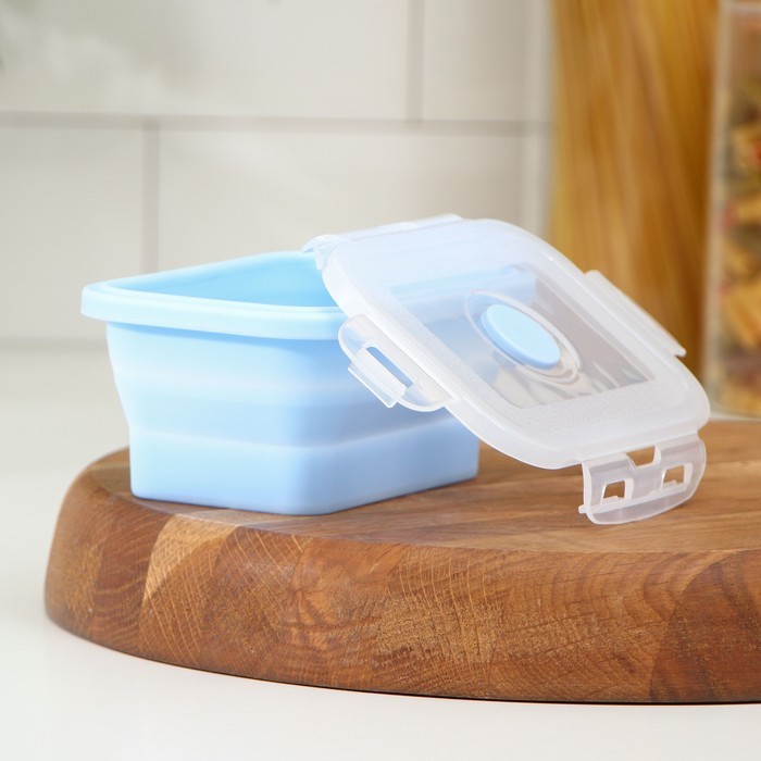 Контейнер складной с крышкой Доляна «Коста», 400 мл, 13х9,5х6 см, голубойВопросы по товару