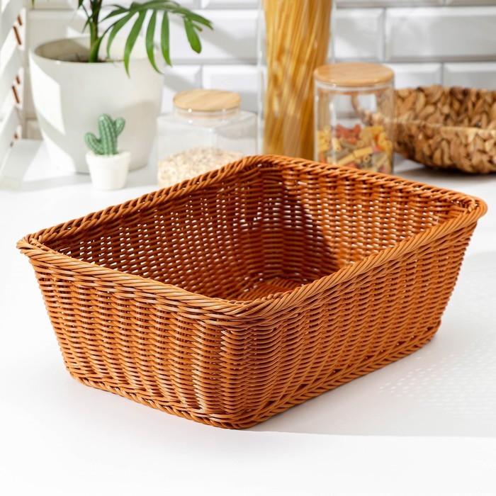 Корзина для продуктов Доляна, 40?30?15 см, пластик, плетёная, коричневаяВопросы по товару