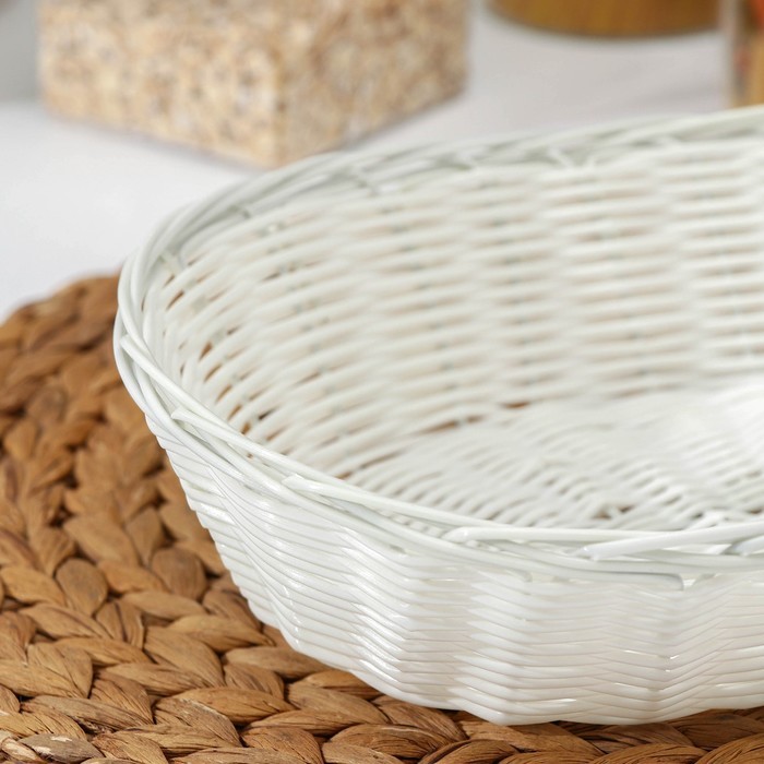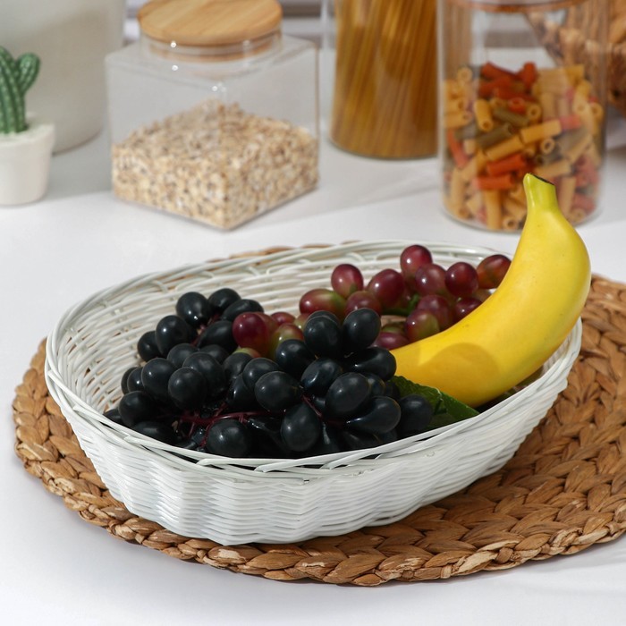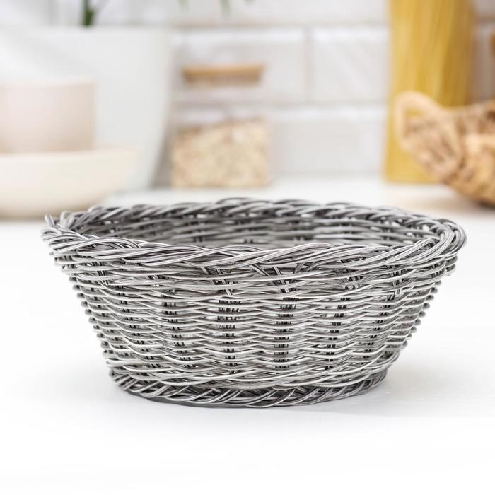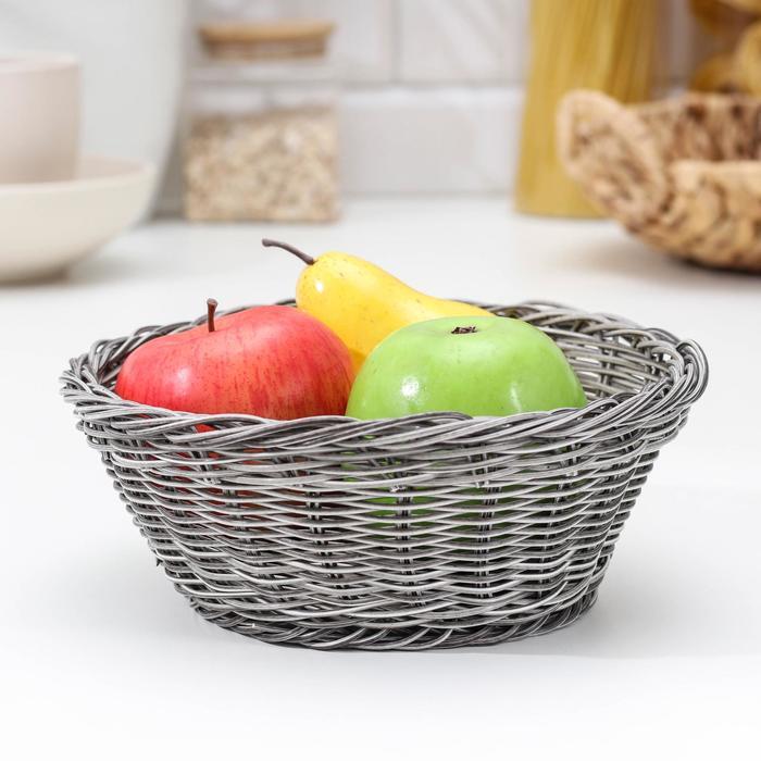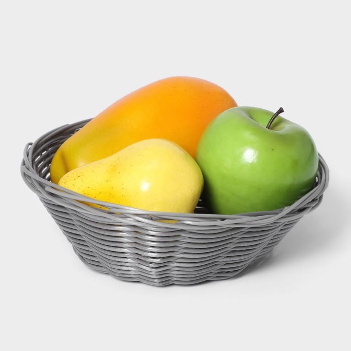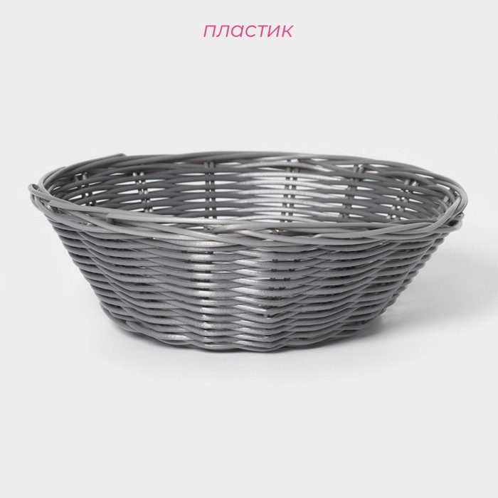Корзинка для подачи фруктов и хлеба Доляна «Лукошко», d=20 см, пластик, плетёная, сераяВопросы по товару