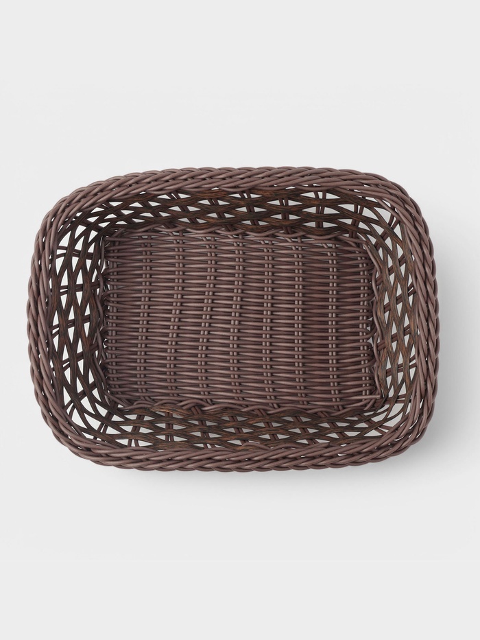 Корзина для продуктов — это практичный и стильный аксессуар, который идеально подходит для хранения и транспортировки различных продуктов. Изготовлена из высококачественного пластика, она отличается п... Показать описаниерочностью и долговечностью. Корзина имеет овальную форму и коричневый цвет, что придаёт ей универсальность и позволяет легко вписаться в любой интерьер. Этот продукт не поставляется в наборе, что делает его самостоятельной единицей, готовой к использованию сразу после покупки. * Прочность и долговечность: изготовлена из качественного пластика, устойчива к коррозии. * Удобство использования: компактные размеры позволяют легко размещать корзину на полках или в ящиках. * Эстетичность: стильный коричневый цвет и аккуратное плетение добавляют эстетики. * Практичность: идеальна для хранения продуктов, фруктов и хлеба, поддерживая порядок на кухне. Эта корзина станет незаменимым помощником на вашей кухне, обеспечивая порядок и удобство хранения фруктов и хлеба.