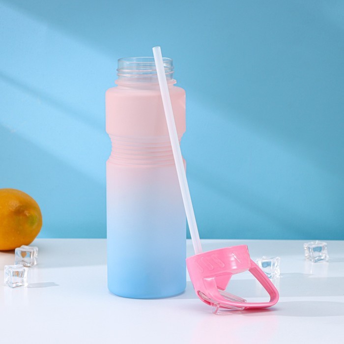 Бутылка для воды Доляна «Градиент», с трубочкой, 700 мл, 25?7?8 см, пластик, розовая/голубаяВопросы по товару