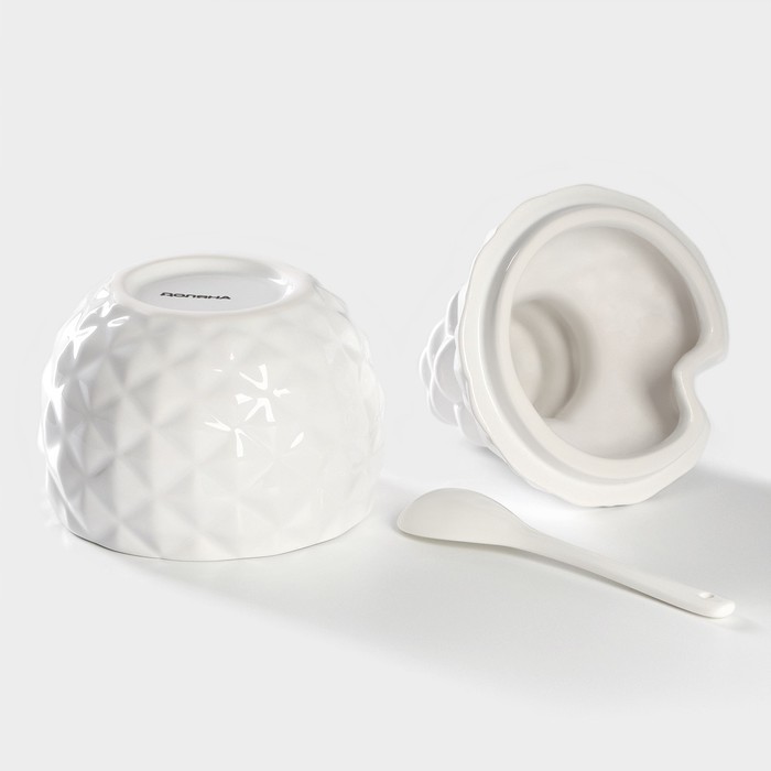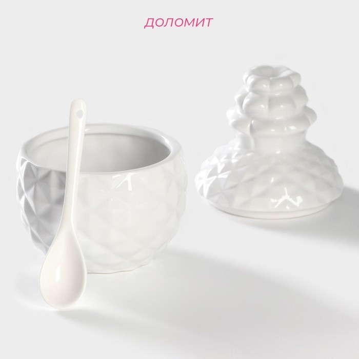 Банка для сыпучих с ложкой Доляна «Ананас», 300 мл, 10?14.5 см, доломит, белаяВопросы по товару