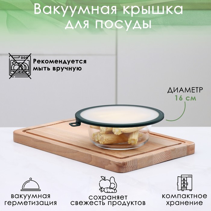 Вакуумная крышка для посуды Доляна, d=16 см, цвет зелёныйВопросы по товару