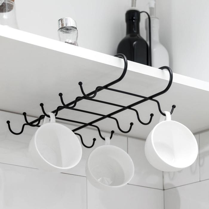 Держатель для кружек подвесной Доляна, на 10 предметов, 27,8?18,5?7,5 см, цвет чёрныйВопросы по товару
