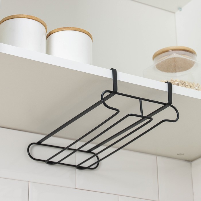 Держатель для бокалов подвесной на 4 предмета Доляна, 10.5?26?7.5 см, чёрныйВопросы по товару