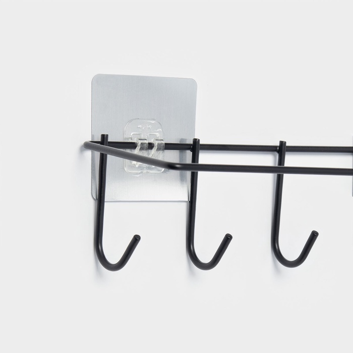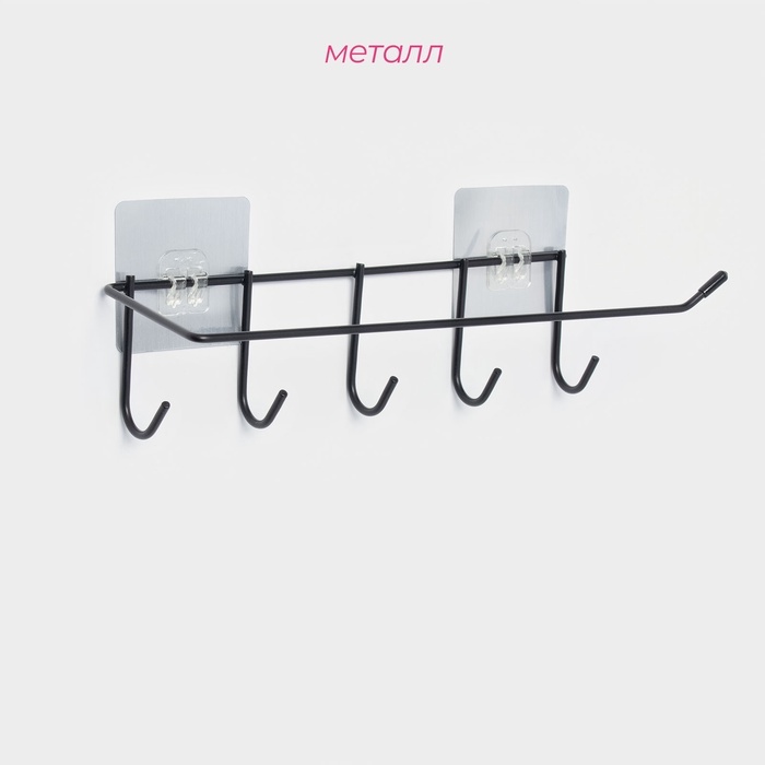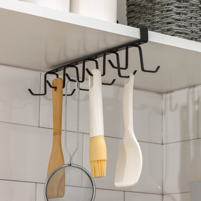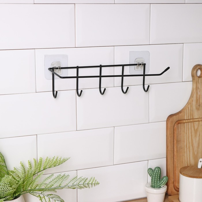 Держатель для кухонных принадлежностей настенный Доляна, 5 крючков, 28?8?8 см, чёрныйВопросы по товару