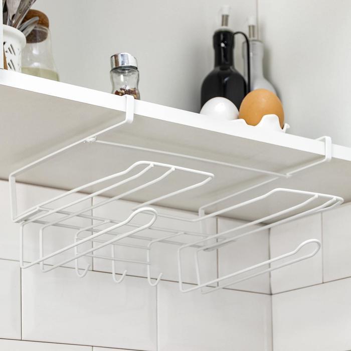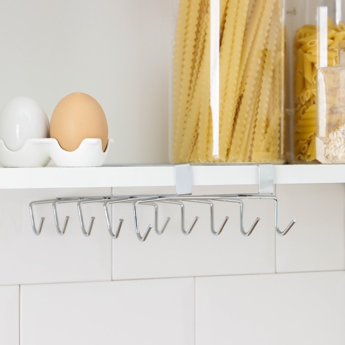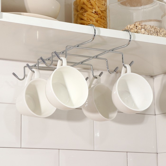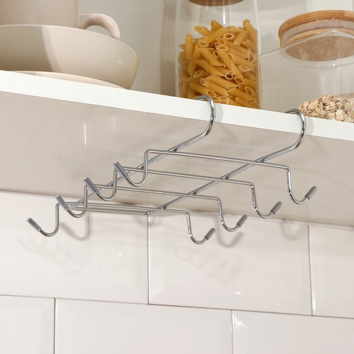 Держатель для кружек подвесной Доляна, на 8 предметов, 27,5?20?7,5 см, на толщину полки 3,5 см, хромированныйВопросы по товару