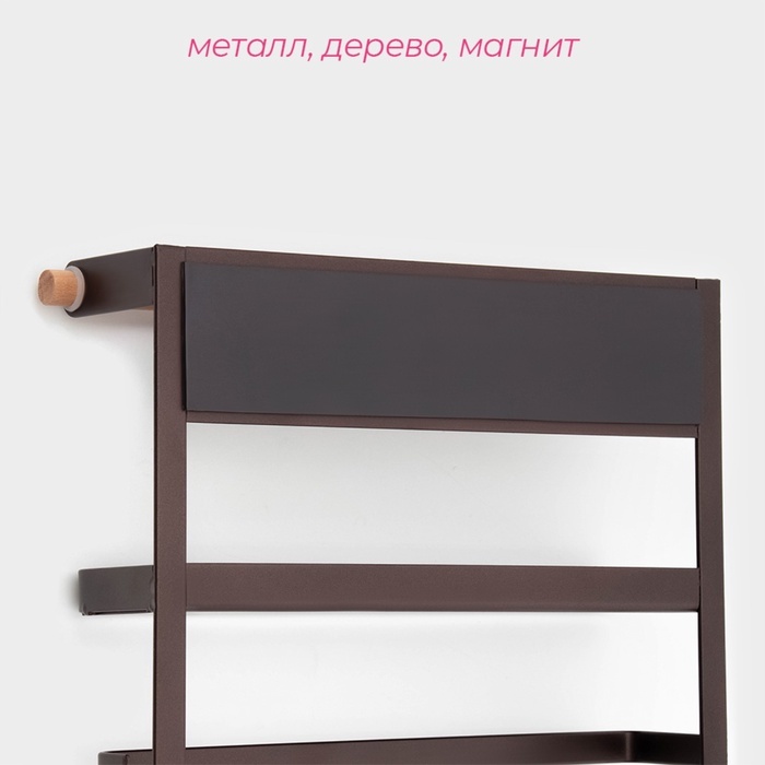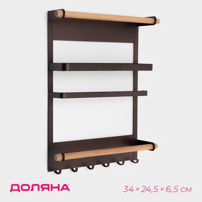 Держатель для кухонных принадлежностей на магните Доляна, 6 крючков, 4 направляющих, 34?24.5?6.5 см, коричневыйВопросы по товару
