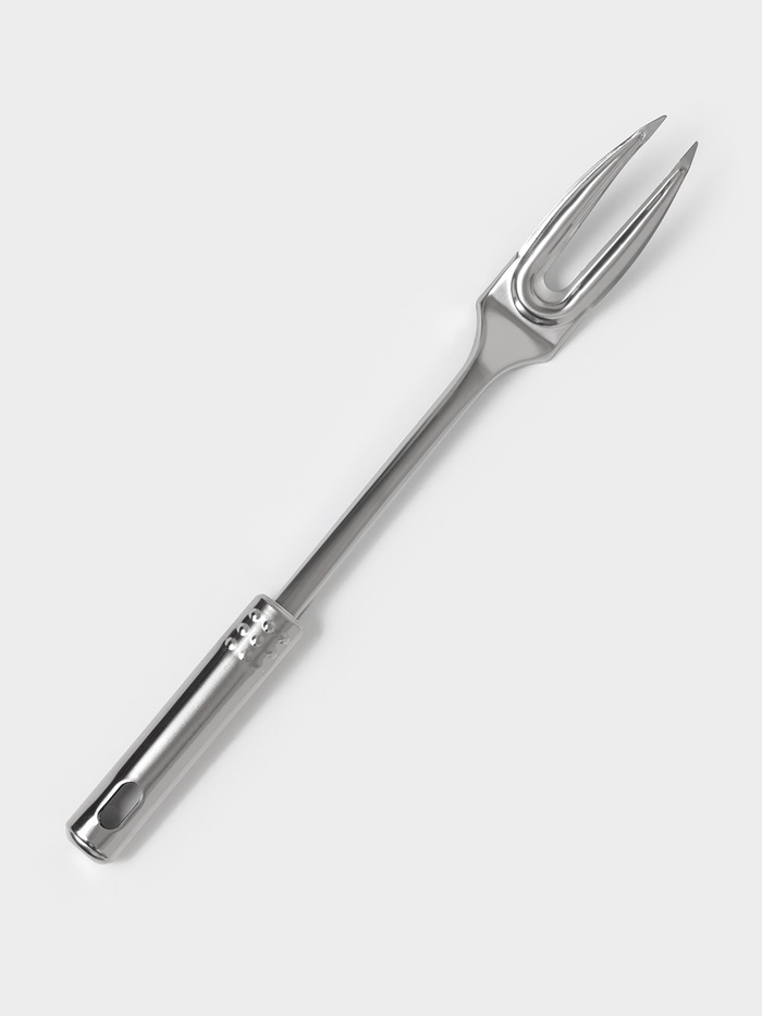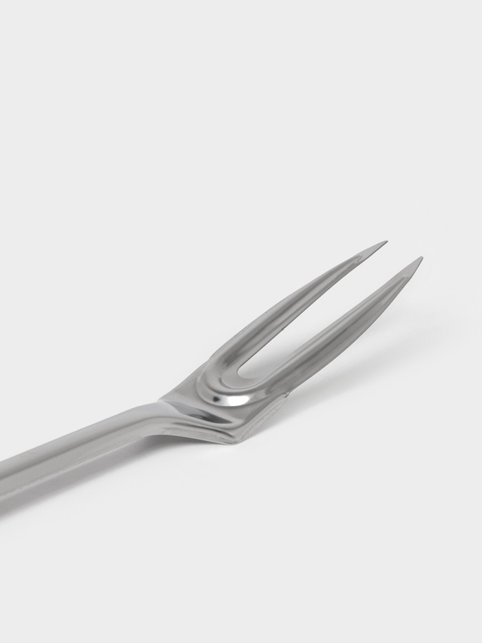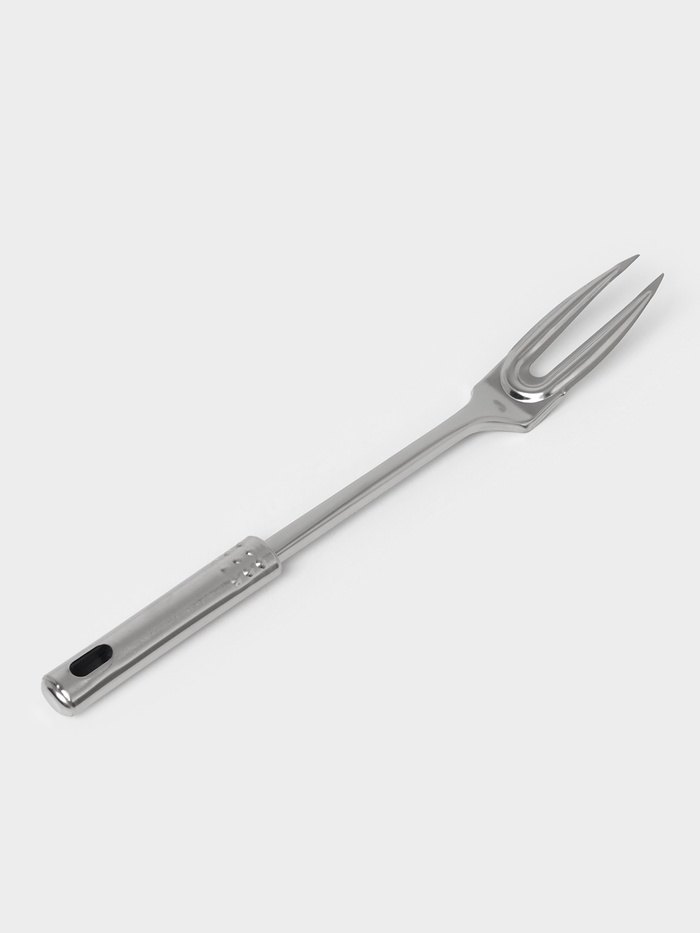 Удобный инструмент для разделки мяса - вилка из нержавеющей стали длиной 46,7 см и толщиной 1,45 мм. Прочная конструкция подходит для работы с различными видами мяса на кухне и за ее пределами. Преиму... Показать описаниещества: * Материал и уход: изделие выполнено из нержавеющей стали с хромированным блеском, что обеспечивает устойчивость к коррозии и облегчает очистку. Поддерживает мытье в посудомоечной машине. * Размер и комфорт: оптимальная длина обеспечивает надежный захват и безопасность при разделке, не ограничивая свободу движений. * Минималистичный дизайн: отсутствие декоративных элементов делает вилку универсальной и практичной для ежедневного использования. Сочетание прочности и функциональности помогает справляться с приготовлением и подачей мясных блюд, делая процесс удобным и эффективным. Дополнительно Размер вилки: общая длина 46,7 см, ширина 4 см; зубья: длина 8,2 см, макс. ширина 1,1 см, мин. ширина 0,1 см. Размер рабочей поверхности (самой вилки без ручки) 12,2 см. Рекомендации по уходу: Можно мыть в посудомоечной машине.
