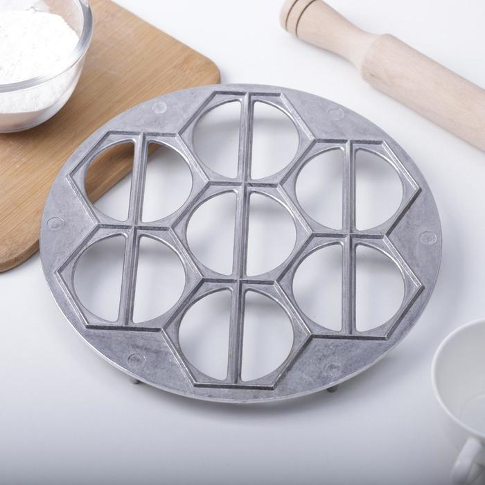 Вареница — это кухонное приспособление для лепки вареников. Форма для изготовления позволит вам значительно сократить время на приготовление домашних изделий из теста. Изделие представляет собой кругл... Показать описаниеую металлическую форму с аккуратными ячейками на небольших ножках. Порадуйте любимых домашними варениками с самыми изысканными вкусами!
