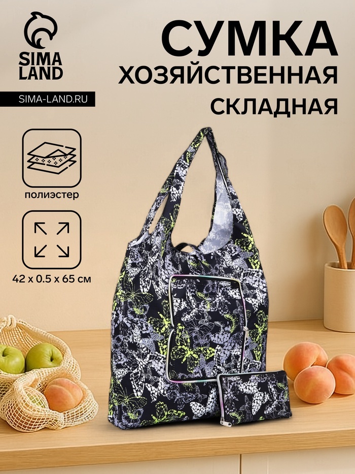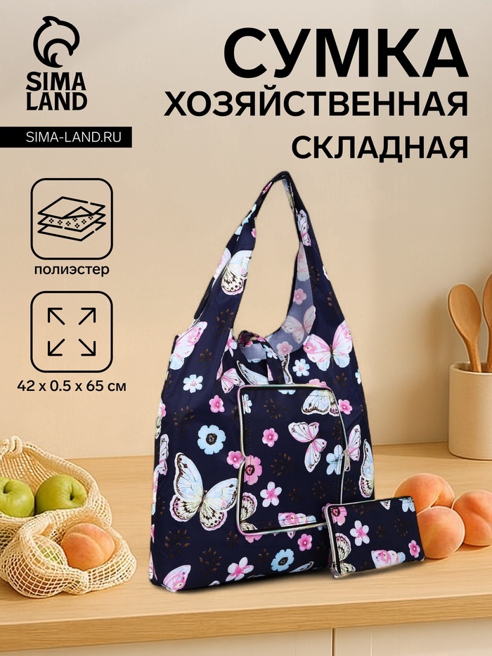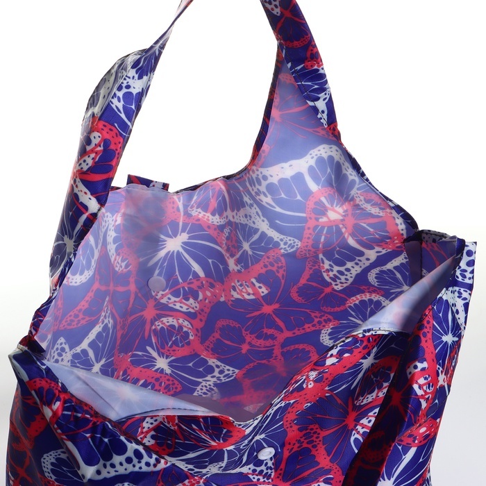 Эта складная хозяйственная сумка станет незаменимым помощником для современной женщины. Выполненная в насыщенном синем цвете с тематическим дизайном "Бабочки", она сочетает в себе стиль и функциональн... Показать описаниеость. Застёжка на кнопке обеспечивает надёжное закрытие, а текстильный материал делает её лёгкой и удобной для повседневного использования. Особенности * Высота сумки — 65 см — оптимальна для переноски запасов продуктов или других хозяйственных принадлежностей. * Вместимость позволяет без труда переносить до 5 кг, что делает её идеальной для небольших покупок. * Длина в 42 см и минимальная ширина в 0,5 см в сложенном виде позволяют легко хранить сумку дома или в автомобиле. * Выразительный рисунок добавляет оригинальности, подчёркивая ваш индивидуальный стиль. Практичность и стиль Эта сумка для покупок специально разработана, чтобы соответствовать активному образу жизни.