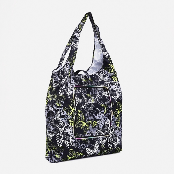 Сумка хозяйственная на кнопке, складная, 38?6?38 см, чёрная/разноцветнаяВопросы по товару