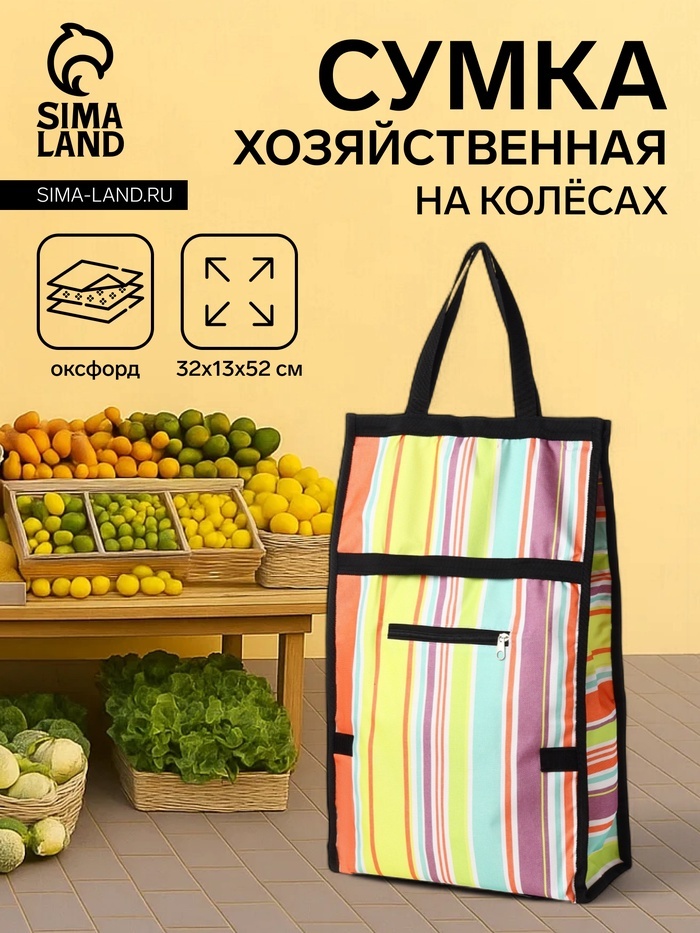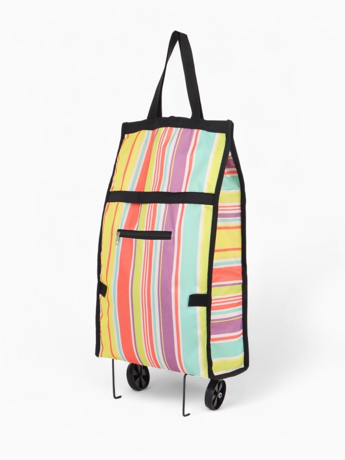 Эта удобная складная сумка на колесах станет незаменимой помощницей в любом магазине или на рынке. Яркий разноцветный дизайн и компактные размеры делают её привлекательной и практичной для современной... Показать описание женщины. Лёгкость и удобство транспортировки обеспечены благодаря оснащению колёсами, а складная конструкция позволяет хранить её без лишних хлопот. Преимущества использования * Эргономичный дизайн идеально подходит для ежедневных покупок и поездок. * Прочный материал «Оксфорд» обеспечивает долговечность и надежность. * Удобная застёжка на липучке фиксирует содержимое, что делает использование максимально комфортным. * Просторный внешний карман позволяет хранить мелкие вещи, которые всегда должны быть под рукой. * Максимальная нагрузка до 8 кг позволяет переносить всё необходимое за один раз. * Стильный принт в полоску подчеркнёт ваш индивидуальный стиль.