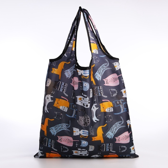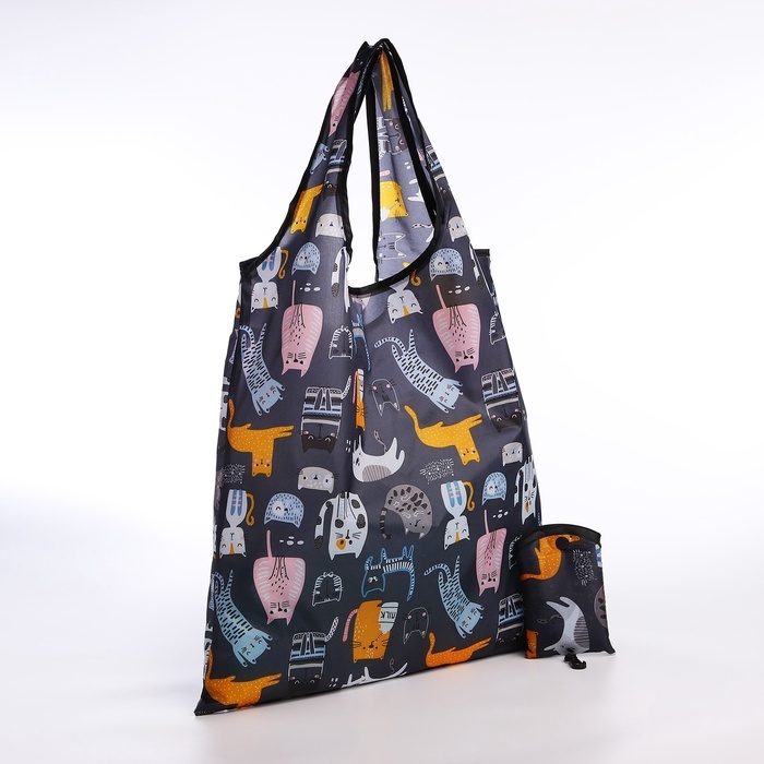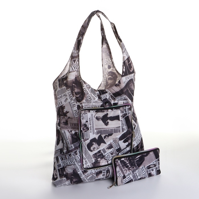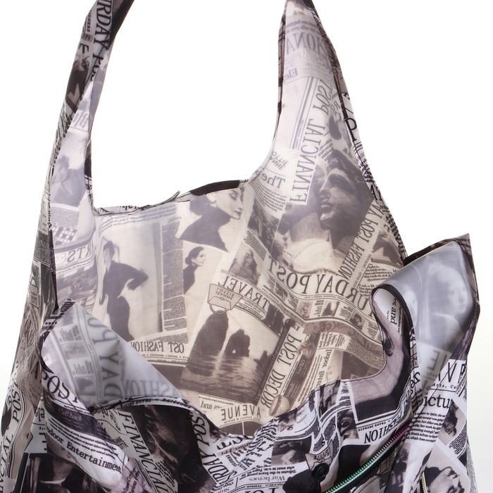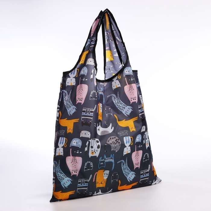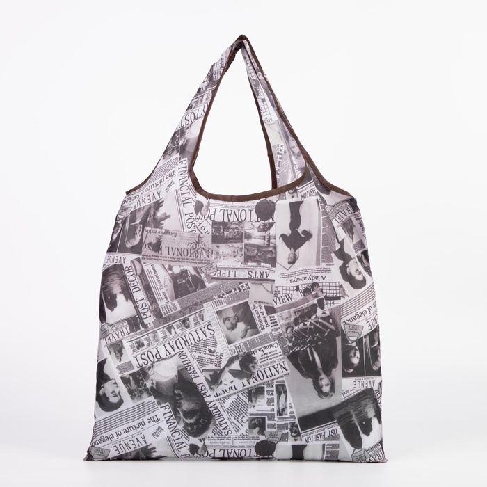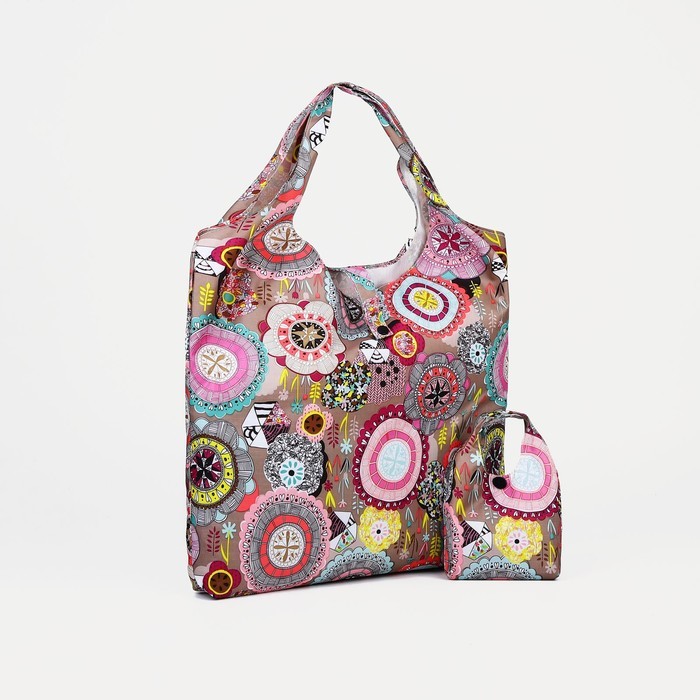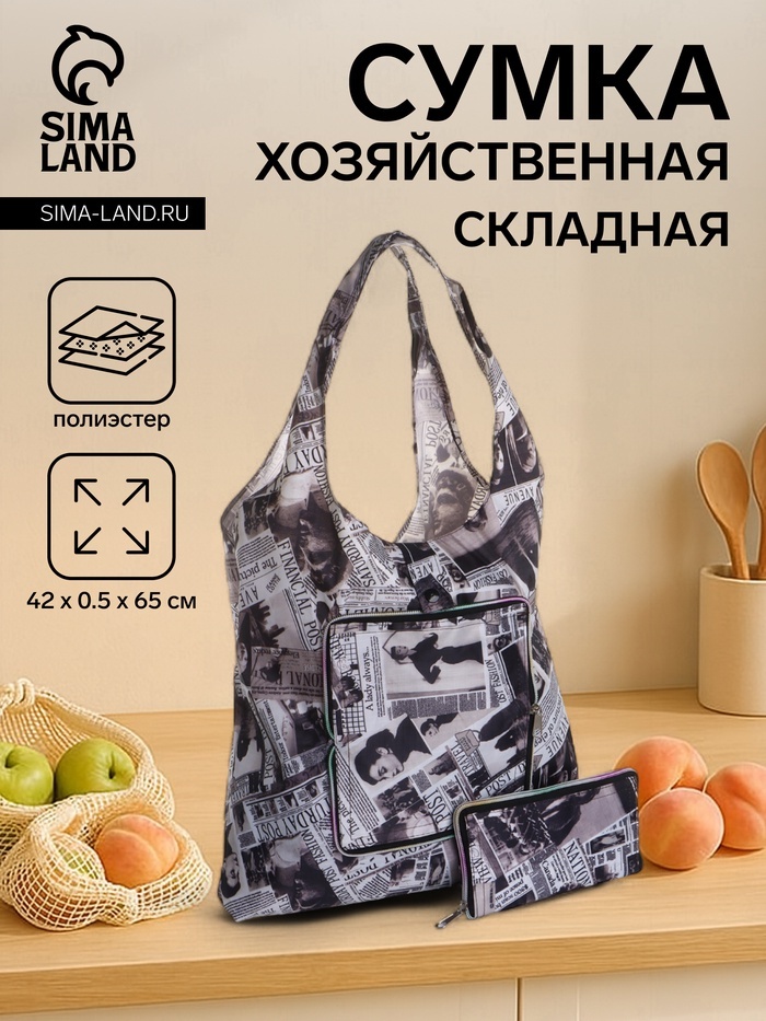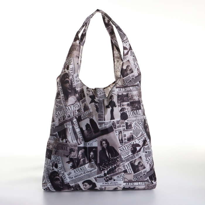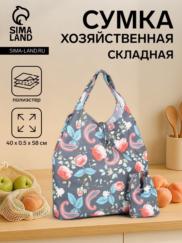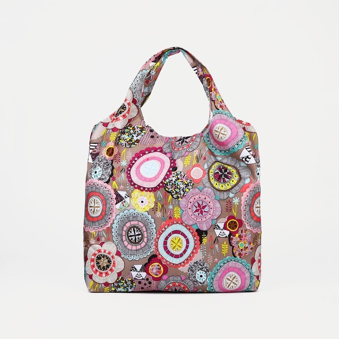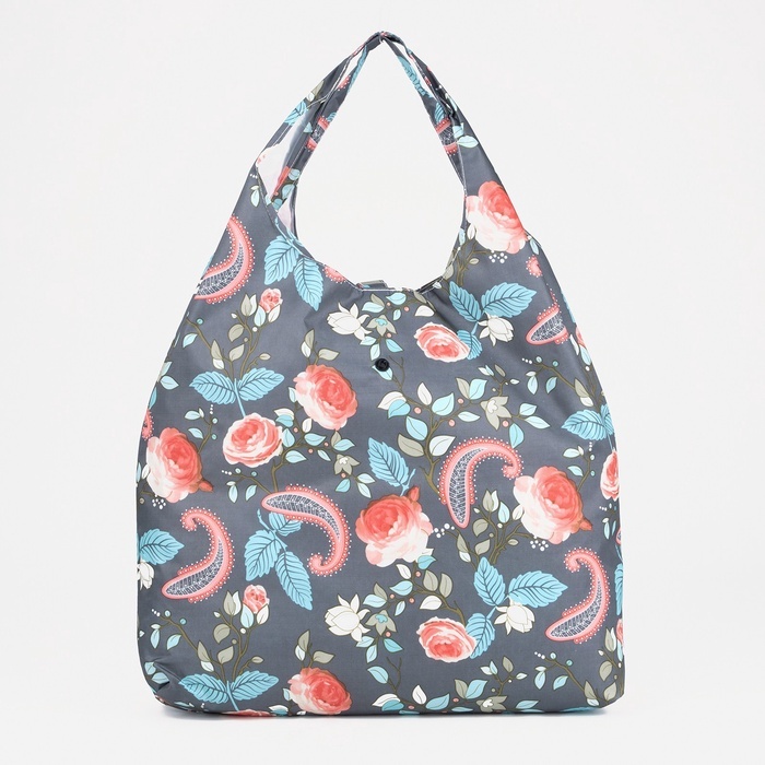 Сумка хозяйственная на кнопке, складная, 40?0.5?58 см, серая/разноцветнаяВопросы по товару