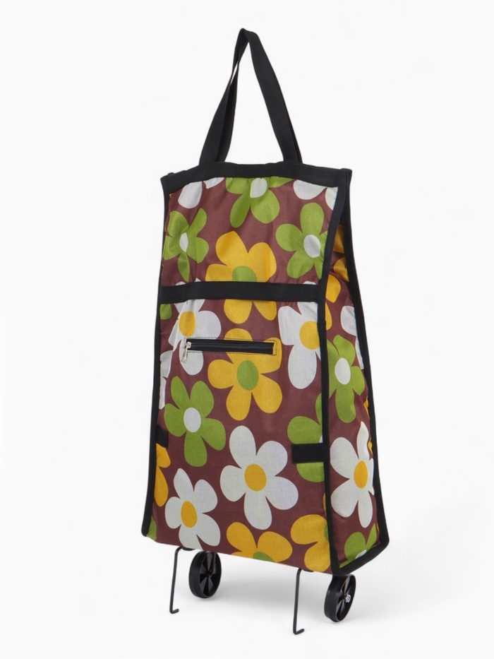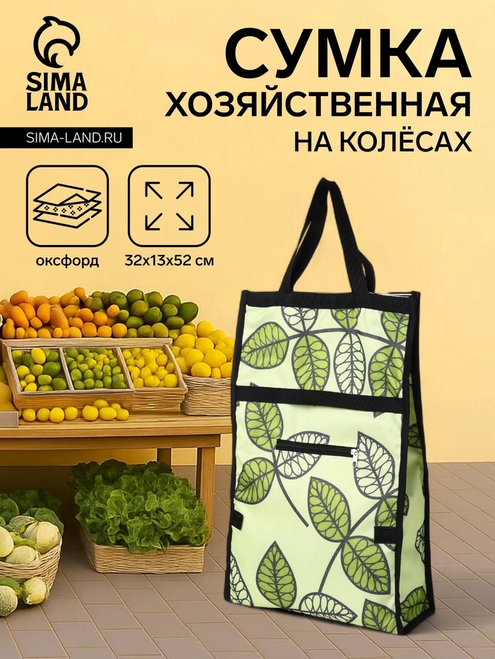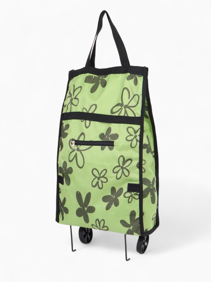 Зелёная складная тележка с колёсами — практичный помощник для походов за покупками. Прочный материал оксфорд выдерживает до 8 кг. Габариты 32?52?13 см оптимальны для транспортировки продуктов и хозяйс... Показать описаниетвенных мелочей. Практичные преимущества * Два колеса для удобного перемещения по магазину * Наружный карман на липучке для быстрого доступа к мелочам * Компактно складывается при хранении * Яркий зелёный цвет с рисунком легко найти среди вещей Для кого создана Эта тележка пригодится: • Для регулярных походов на рынок или в супермаркет • При транспортировке дачного урожая • Для хранения хозяйственных принадлежностей Те, кто устал носить тяжёлые пакеты, оценят её манёвренность и удобство.