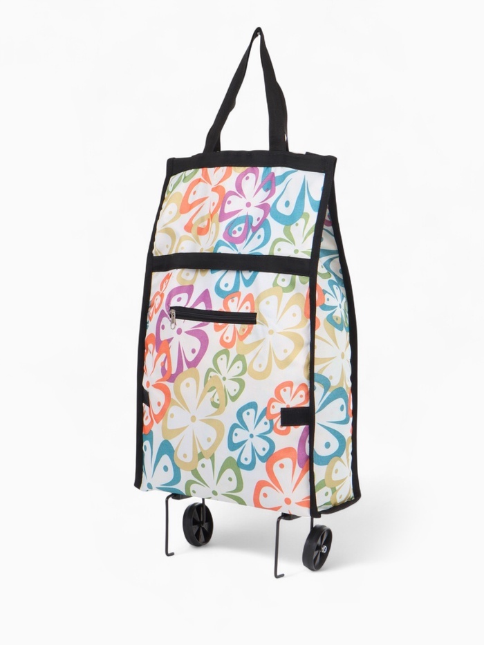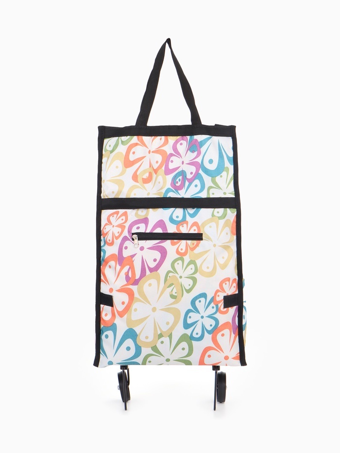 Сумка хозяйственная складная на липучке, 2 колеса, наружный карман, 32?13?52 см, белая/разноцветнаяВопросы по товару