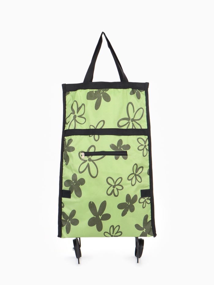 Сумка хозяйственная складная на липучке, 2 колеса, наружный карман, 32?13?52 см, светло-зелёнаяВопросы по товару