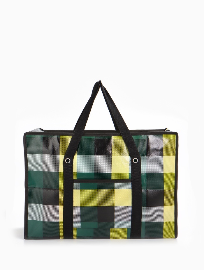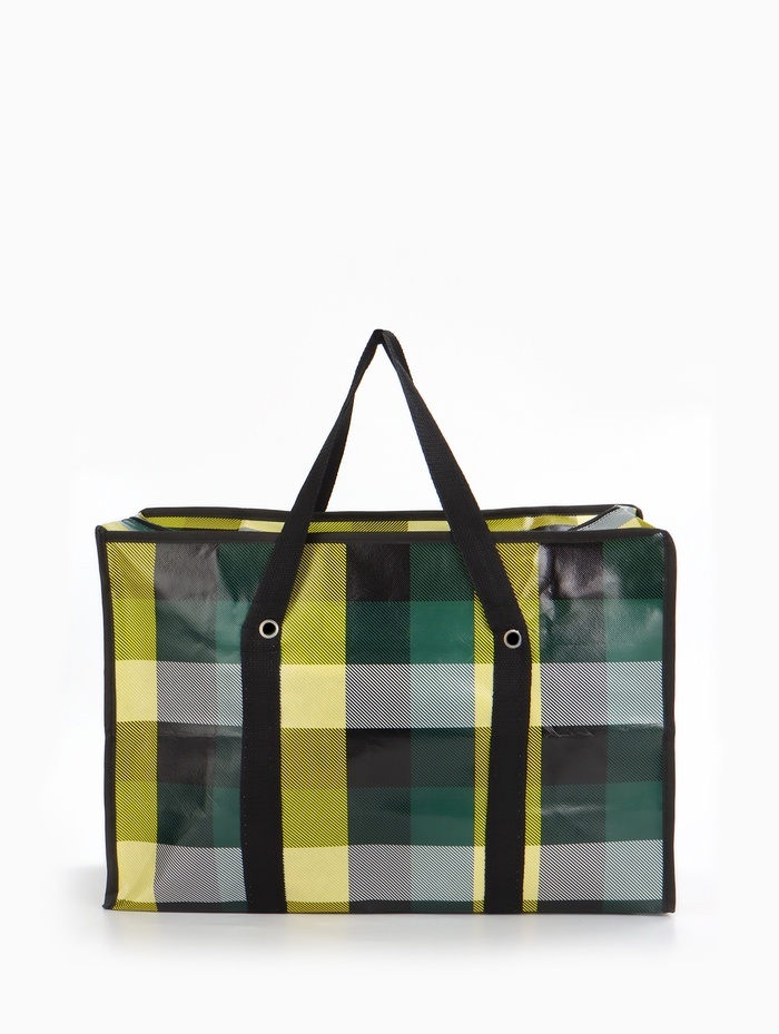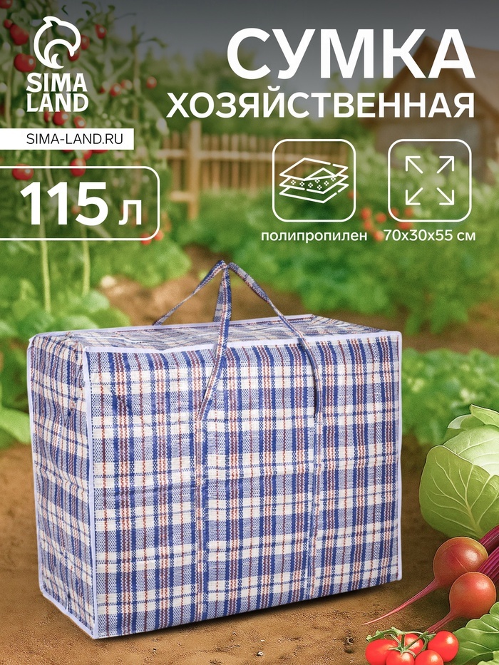 Большой хозяйственный баул на молнии объёмом 105 литров — решение для хранения и транспортировки вещей. Полипропиленовый материал выдерживает до 20 кг, а чёрно-белая клетка маскирует возможные загрязн... Показать описаниеения. Подойдёт для дачи, переезда или сезонного хранения одежды. Практичные характеристики * Габариты 64?51?32 см вмещают крупногабаритные предметы * Молния по всей длине обеспечивает полный доступ к содержимому * Лёгкий, но прочный материал устойчив к влаге и истиранию * Универсальный дизайн подходит мужчинам и женщинам Где пригодится Этот баул заменяет несколько небольших сумок при переезде или уборке. Его берут на дачу для перевозки инструментов и садового инвентаря. В межсезонье удобно хранить в нём зимние вещи или спортивный снаряжение. Те, кто ценит порядок, используют его для систематизации редко используемых предметов.