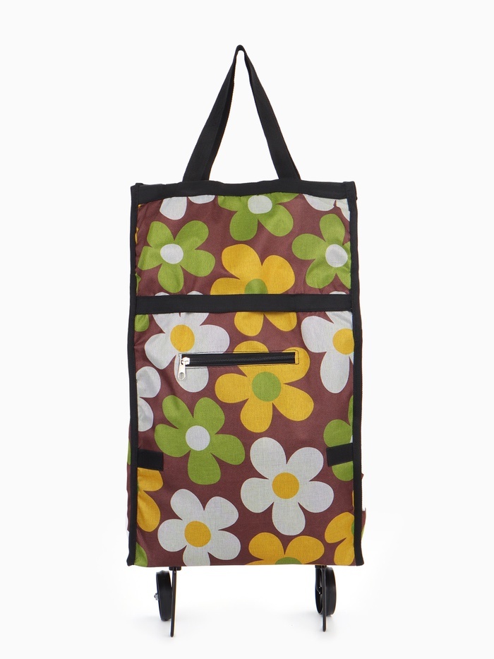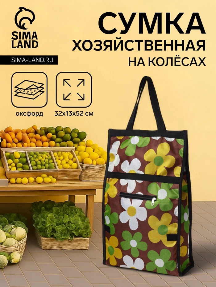 Сумка хозяйственная складная на липучке, 2 колеса, наружный карман, 32?13?52 см, разноцветнаяВопросы по товару
