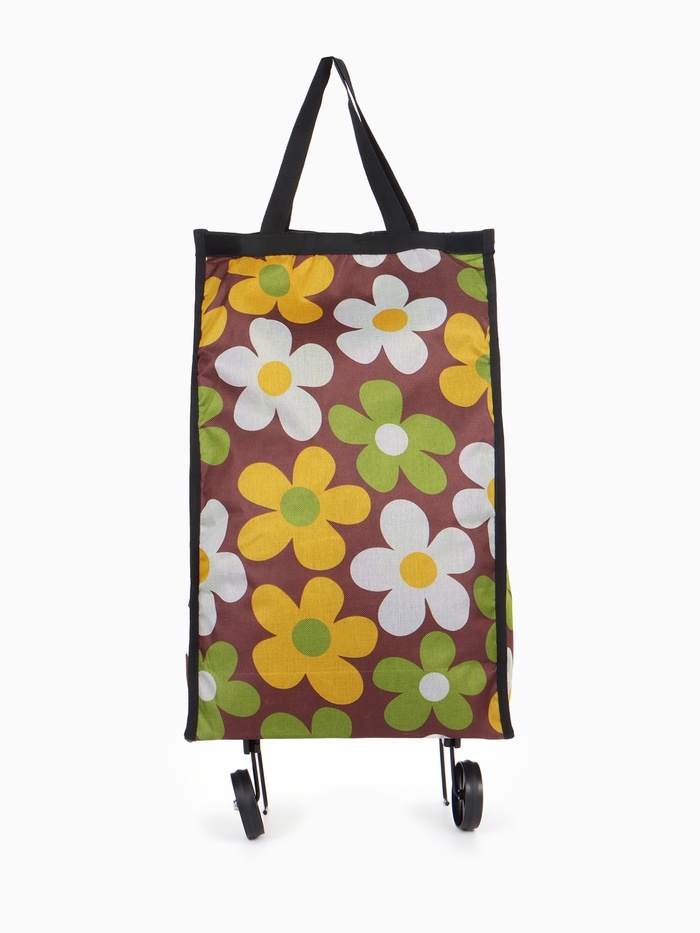Сумка хозяйственная складная на липучке, 2 колеса, наружный карман, 32?13?52 см, жёлтая/разноцветнаяВопросы по товару