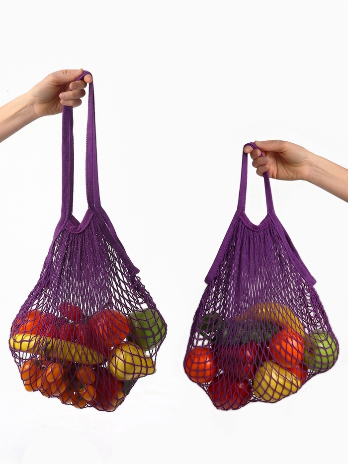 Сетчатые сумки из хлопка, произведенного с заботой о людях и природе, позволят вам обходиться без одноразовых пластиковых пакетов, а значит, уменьшить воздействие на климат. Кроме того, в таких сумках... Показать описание можно хранить фрукты и овощи. Особенности: * Сетка обеспечивает циркуляцию воздуха, что позволяет овощам и фруктам дольше сохранять свежесть. * Прочная, не повреждается при переноске острых предметов. * Компактная в сложенном виде. * Легко стирается и быстро сохнет. * Не наносит вред окружающей среде - заменяет пакеты. Дополнительно * Размеры могут различаться ? в зависимости от того, что вы будете хранить в сумке.