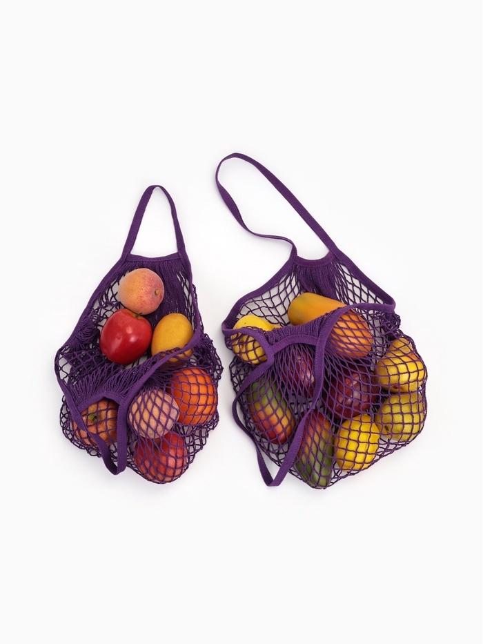 Набор 2 шт: сумка-авоська хозяйственная, клетка 1.5 см, фиолетоваяВопросы по товару