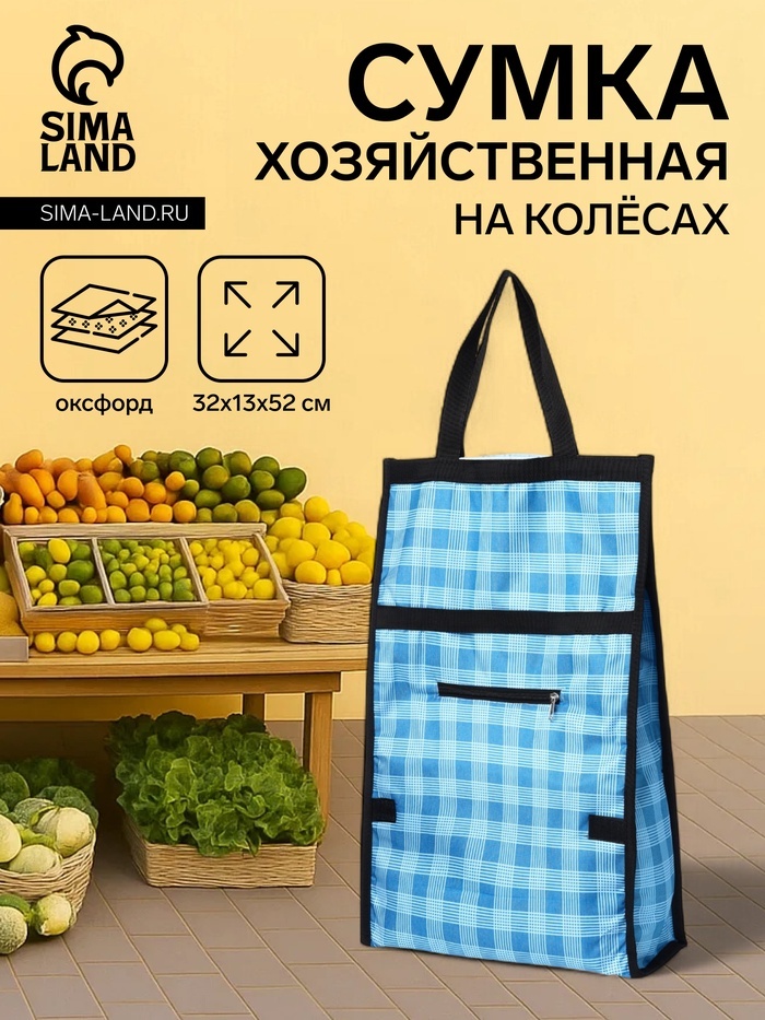 Сумка хозяйственная складная на липучке, 2 колеса, наружный карман, 32?13?52 см, голубаяВопросы по товару