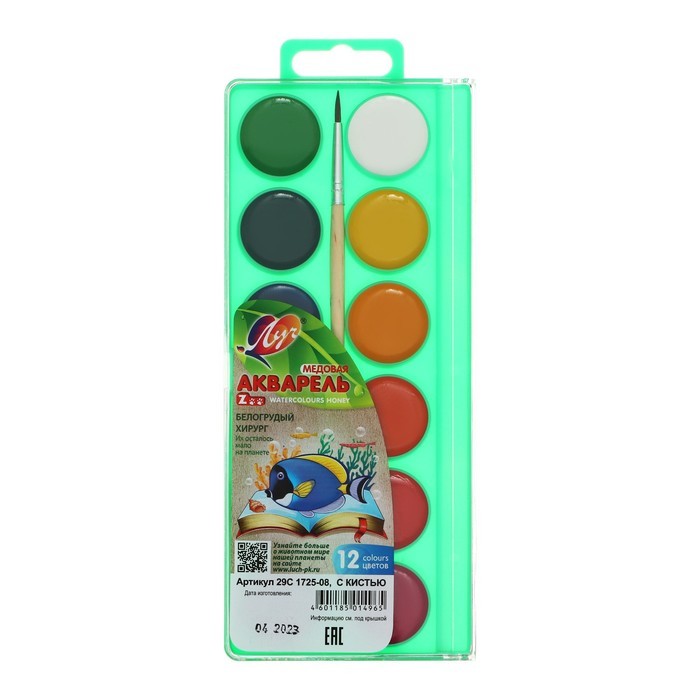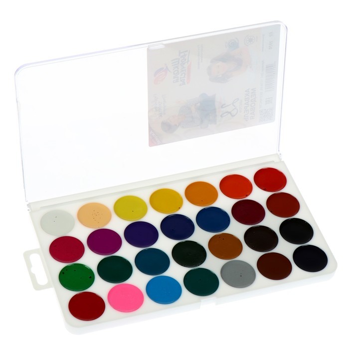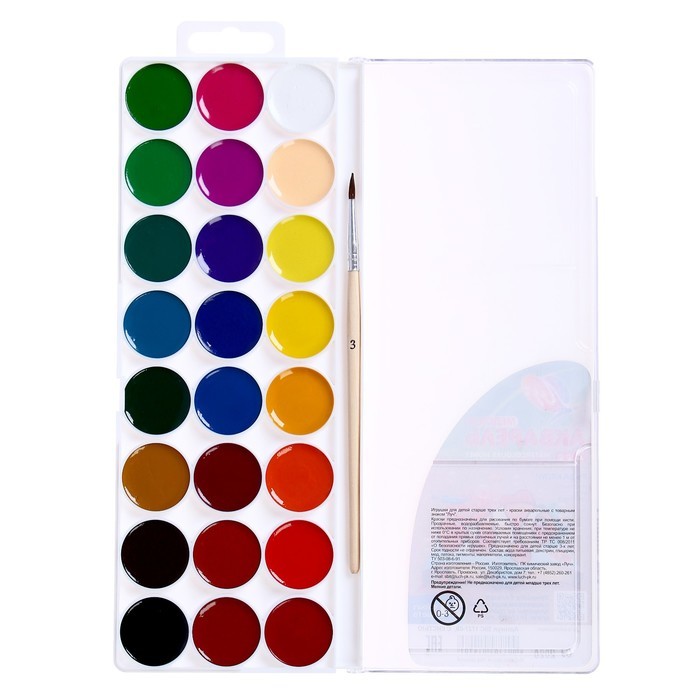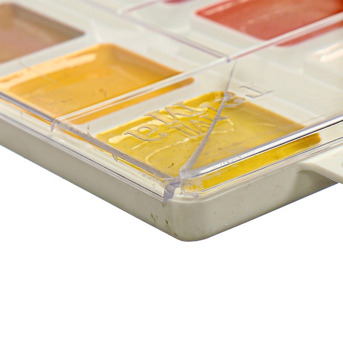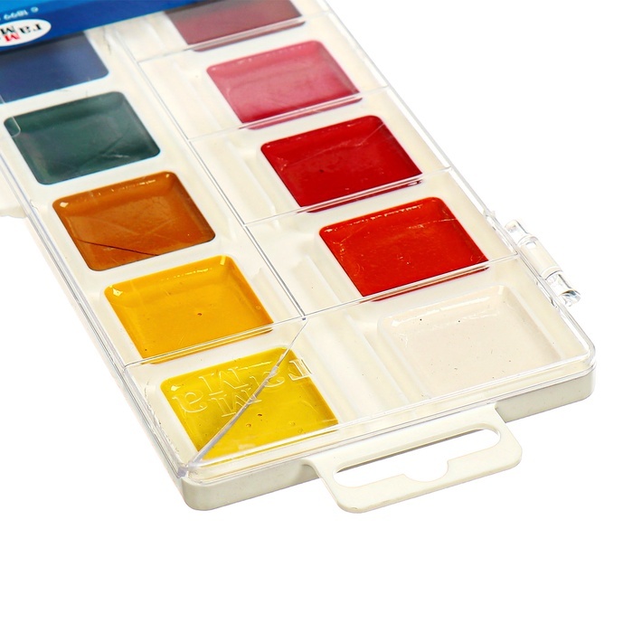 Медовая полусухая акварель серии "Классическая" разработана для использования в школе и дома. * Естественные цвета акварели обучают правильному цветовосприятию окружающего мира. * Краски изготовлены н... Показать описаниеа основе органических пигментов и натурального связующего. * Прозрачность красок, яркость и чистота цвета, разносимость и размываемость - основные характеристики акварели данной серии. * Кюветы с высокими бортиками и увеличенным расстоянием между красками предназначены для удобства в работе детей. * Палитра для смешивания красок расположена на крышке. * Акварель легко смывается с рук и отстирывается с одежды. * Объем кювет - 3,14 см3. Форма кювет - квадратная. Акварель - водорастворимая краска, поэтому высыхание (пузырьки, трещины) краски в кювете - не считается браком Трещина на акварели не является браком. Акварель трескается из-за испарения воды, которая была в составе краски. Чтобы восстановить рабочие свойства краски, необходимо восполнить нехватку жидкости